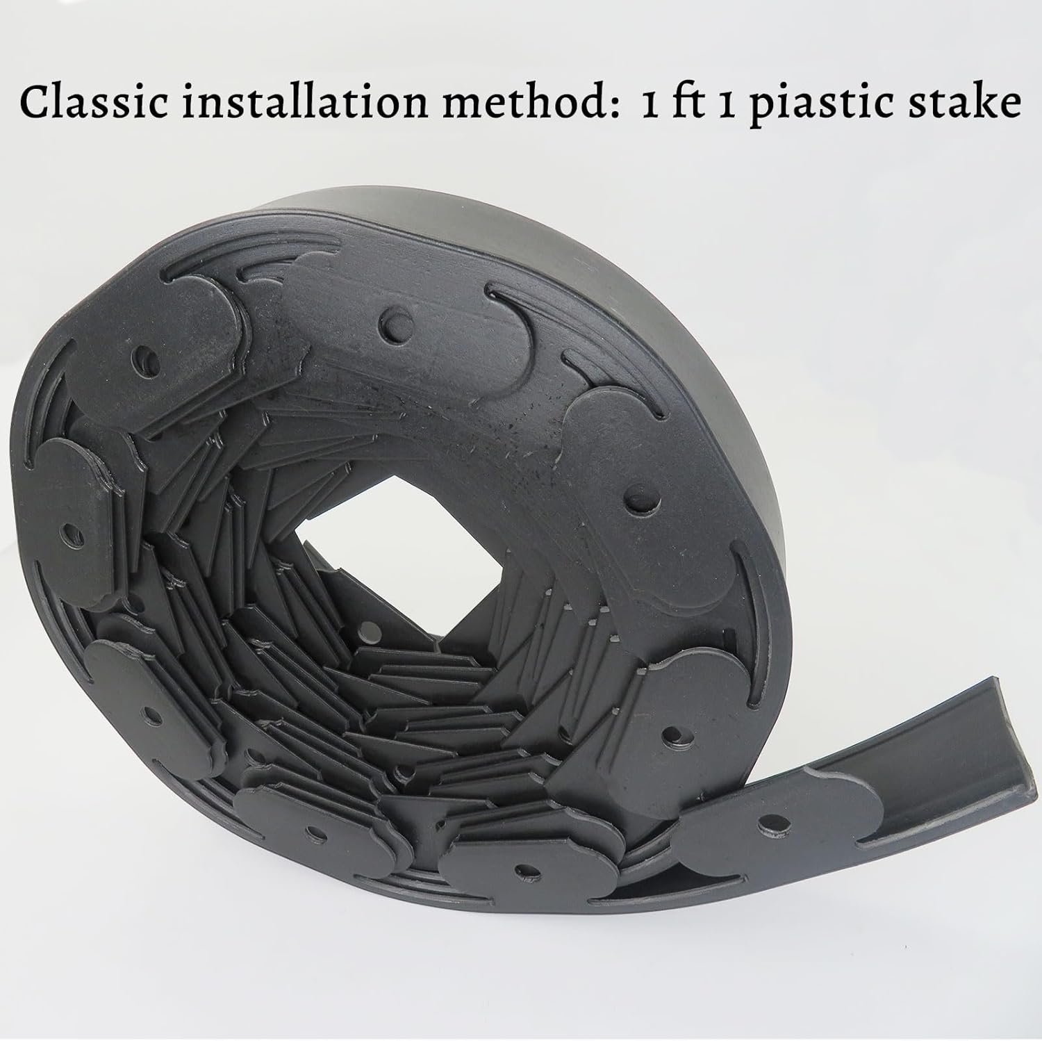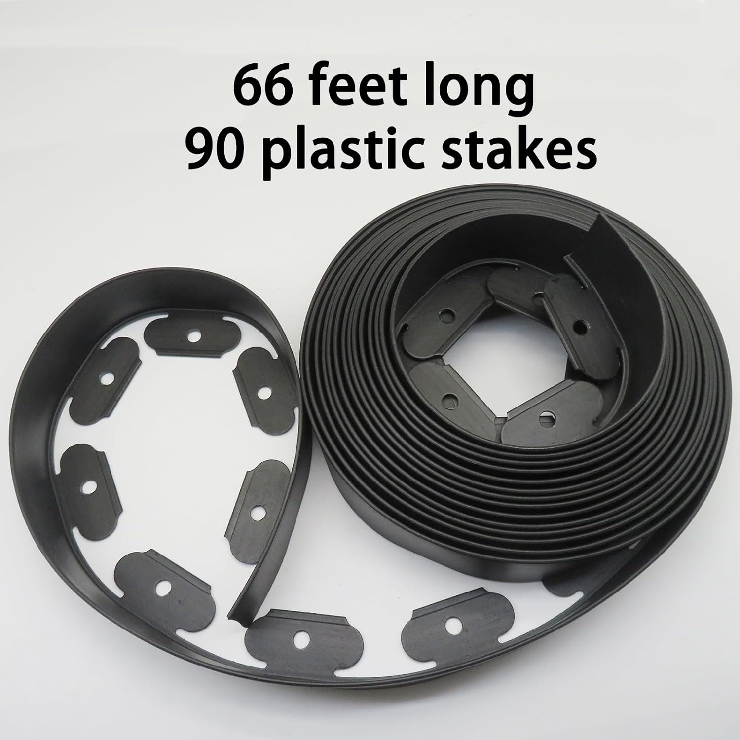 • 【Product Dimensions】The landscape edging border kit,black, includes a 66 ft. coil of landscape edging,2inch tall,90pcs plastic stakes,and 1 metal stake. The garden bed border kit are recommended to use 1 spikes per 1ft. to secure the landscape borders.