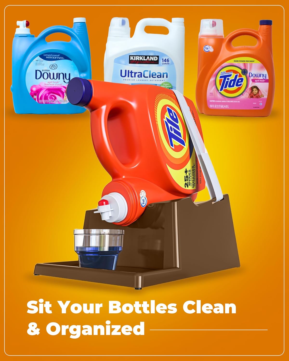 • [Versatile Fit:] The liquid laundry detergent holder station's optimal size (7.9"L x 12.2"W x 5.5"H) accommodates various bottle sizes, providing a perfect fit for most detergent containers without taking up too much space. (Laundry Soap, Cup, and Bottles NOT Included)