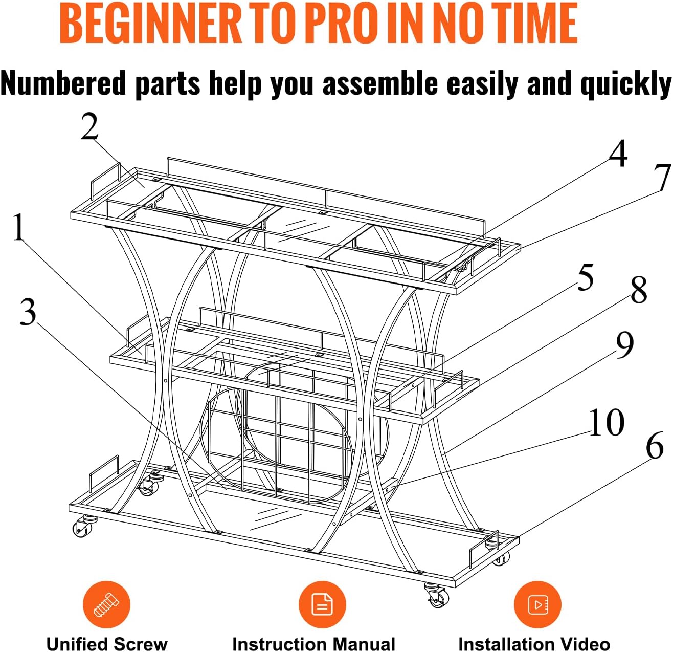 • 【PLENTY OF STORAGE SPACE】 - The bar cart is designed with 2-tiers of shelves to fully hold your wine and snacks, or display the items you need to display. Don't worry about falling; the bottom frame with a fence can stop your items from falling.