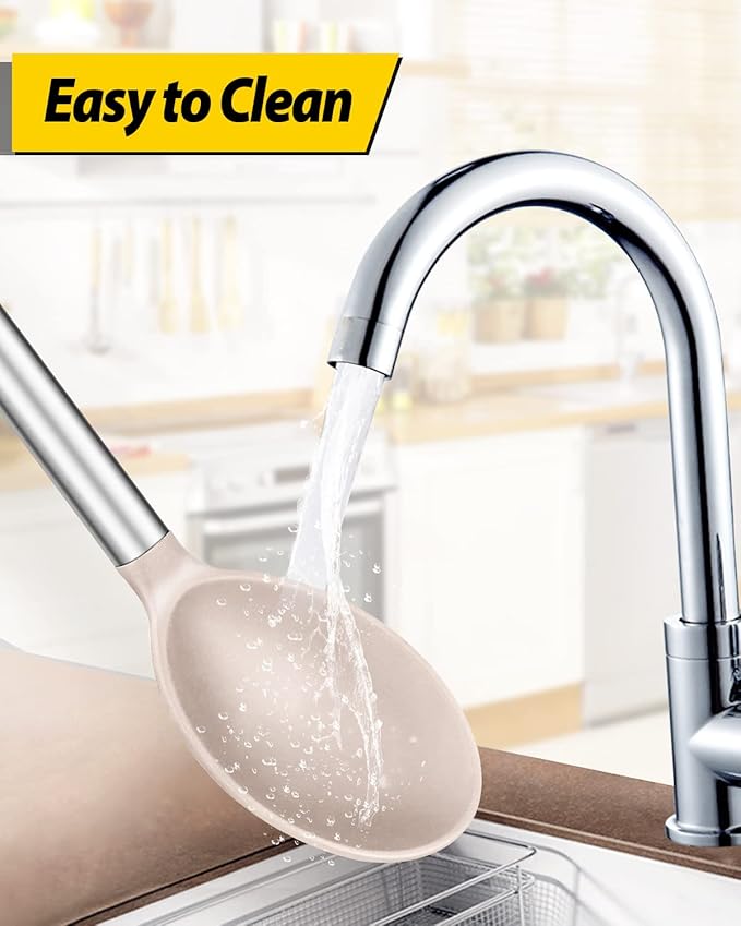 • More Safe and Healthy : Our silicone spoons are made of food-grade silicone, free of BPA;Even at high temperatures, there is no need to worry about melting or deforming;And the soft silicone head won't scratch the coating, it can better protect your pot
