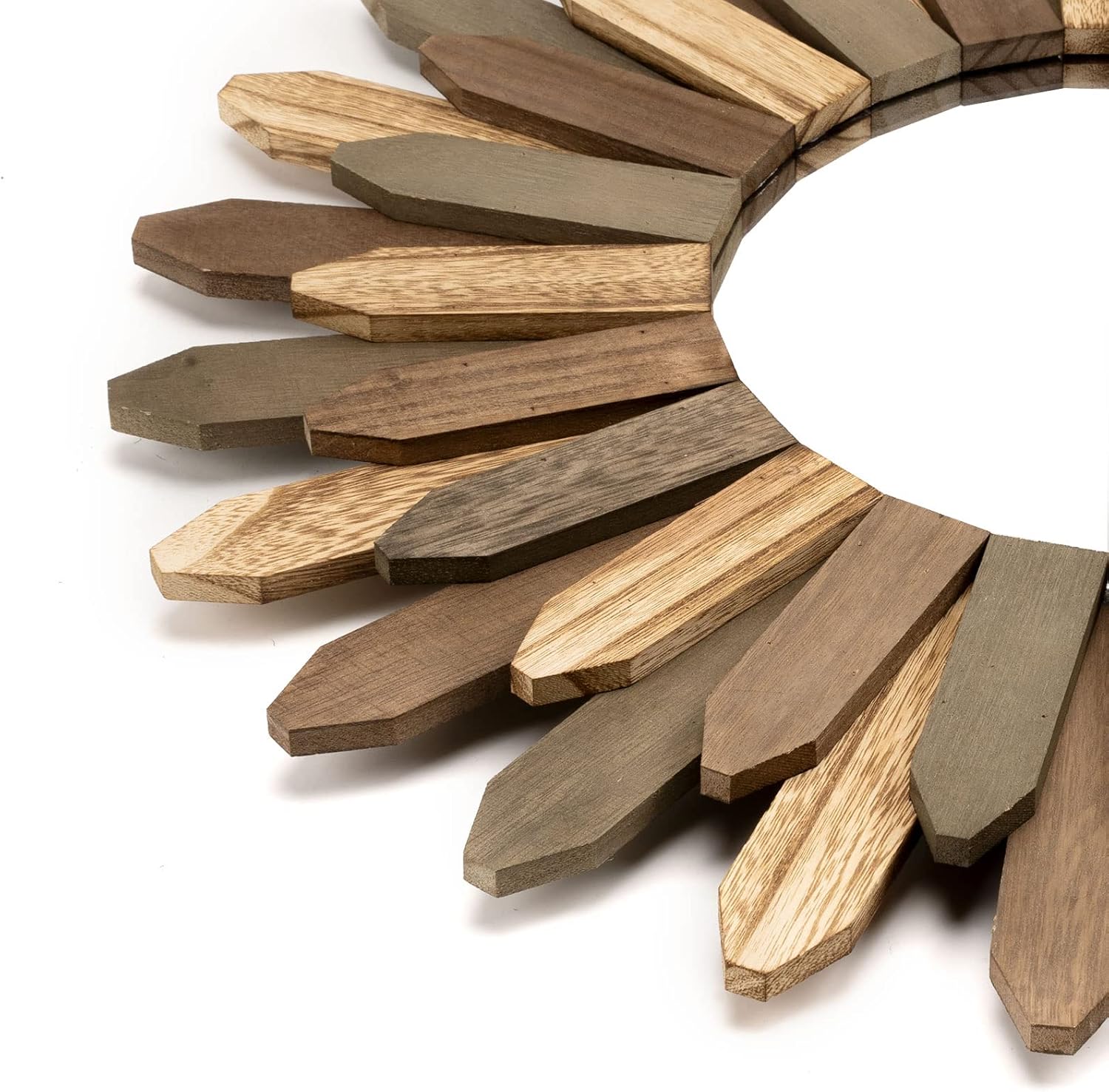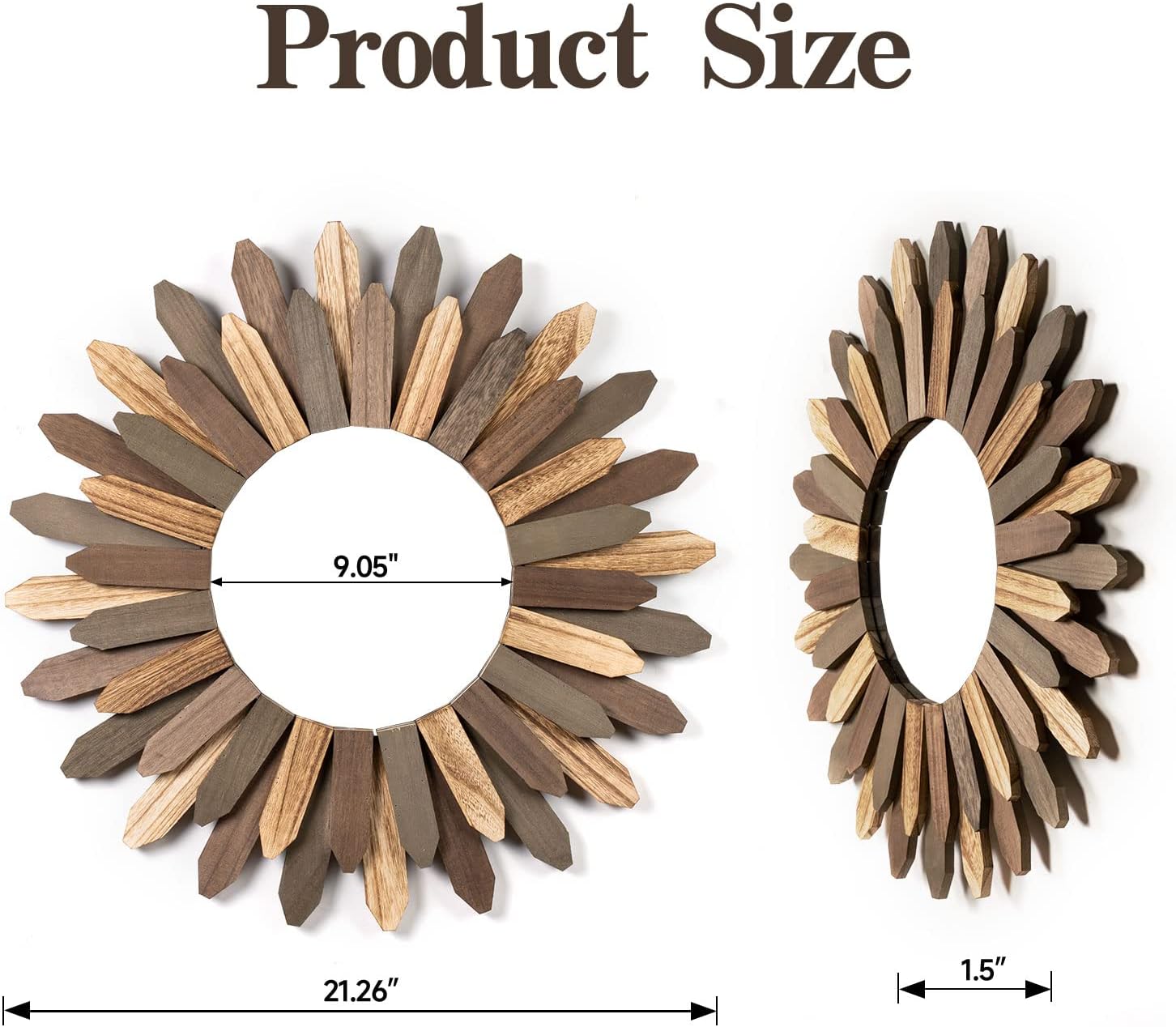 • Boho Home Decor for Living Room: This 21 inch large decorative mirror is made of solid wood and features three rustic colors that give it an antique accent, while the beautiful wood texture adds to its charm. Unlike traditional glass mirrors, this mirror is made with acrylic panels that won't crack and break like glass. This stylish and eye-catching decor piece is the perfect addition to any home decor
