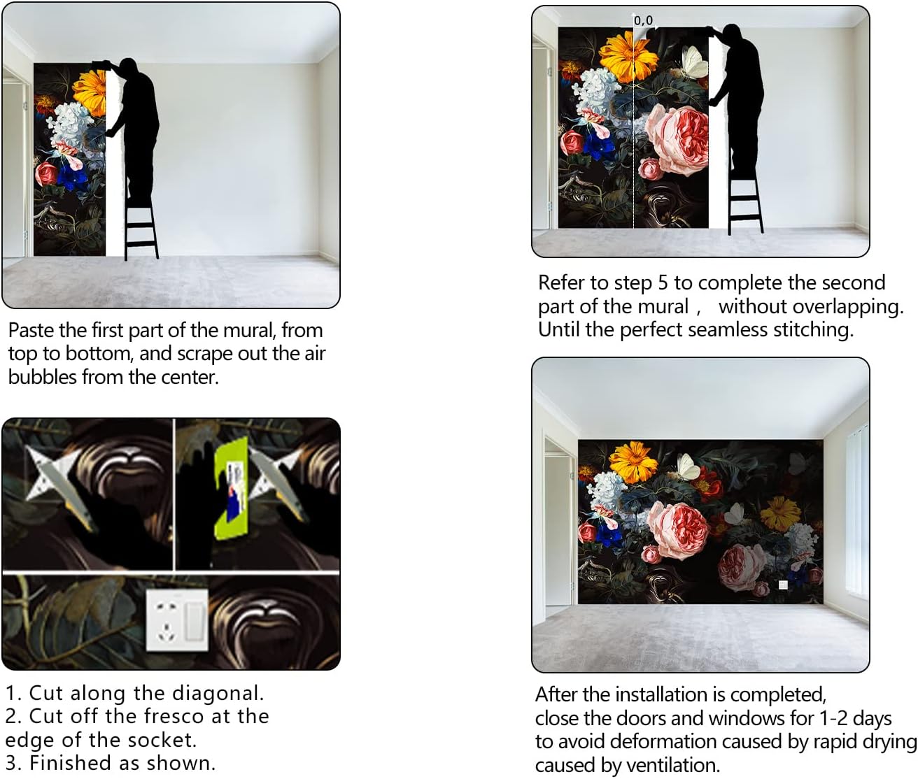 • It's easy to install: at the bottom of each mural we have a numbered sequence, You can refer to the instructions we provided and the main picture 6-7,just match the numbers and you'll be amazed!