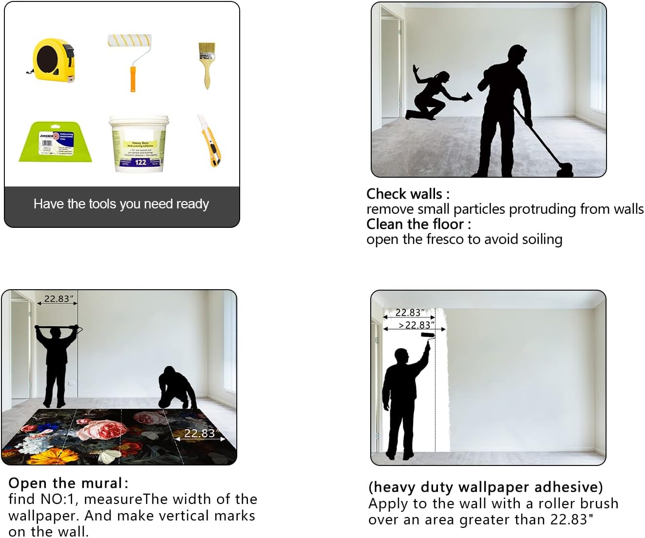 • This mural is It's not Peel and Stick . Additional Purchase required ( thick wallpaper adhesive ) please Check if is the product you need . thanks.