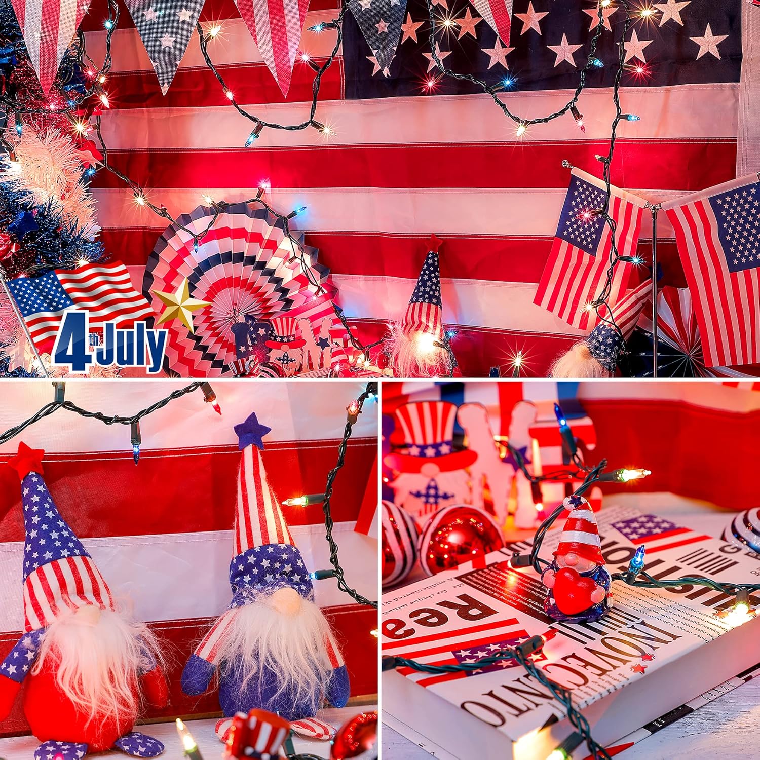 Hopolon Red White and Blue Mini Lights,2PACK 50Count 4th of July Patriotic String Lights Green Wire,13FT Incandescent Independence Day Light for Indoor Outdoor Christmas Party Decor,Red White Blue