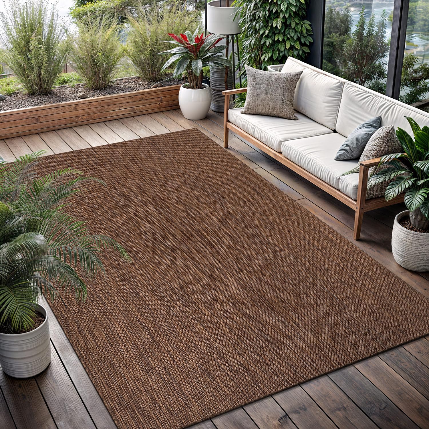 Washable Indoor Outdoor Rug Weather Resistant Carpet Modern Solid for Porch Deck Balcony Backyard Patio Rug 5x7 Gold Brown