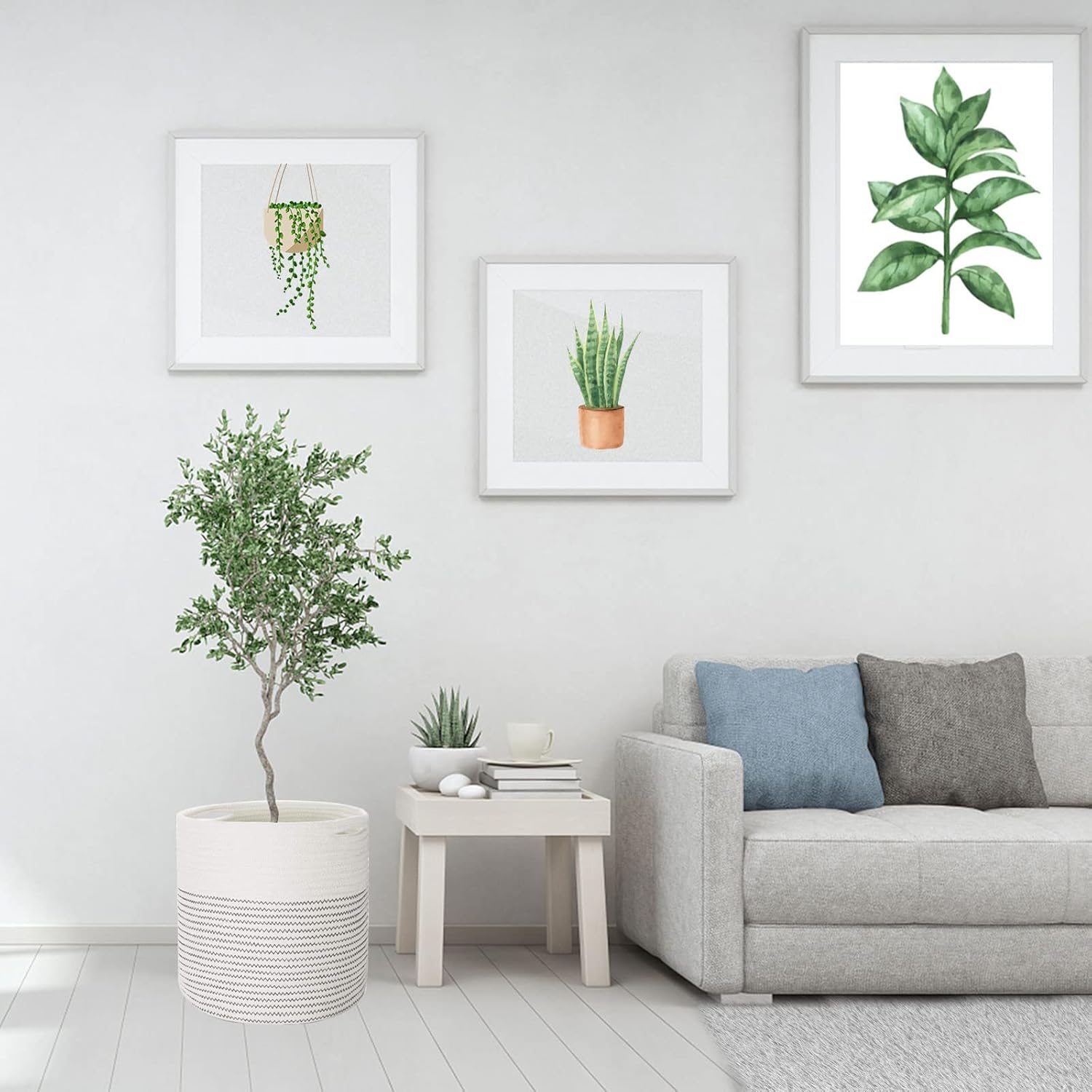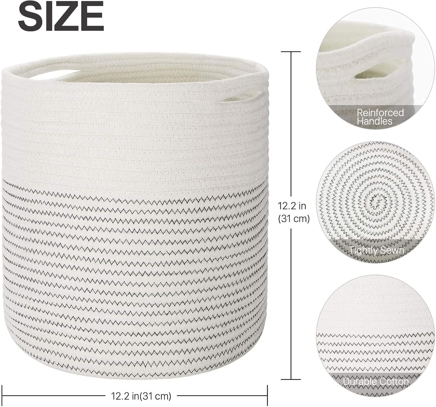 Woven Cotton Rope Plant Basket for 11 12" Flower Pot Floor Indoor Planters, Decor Basket for Plants Storage Organizer Modern Home Decor (12" x 12", White)