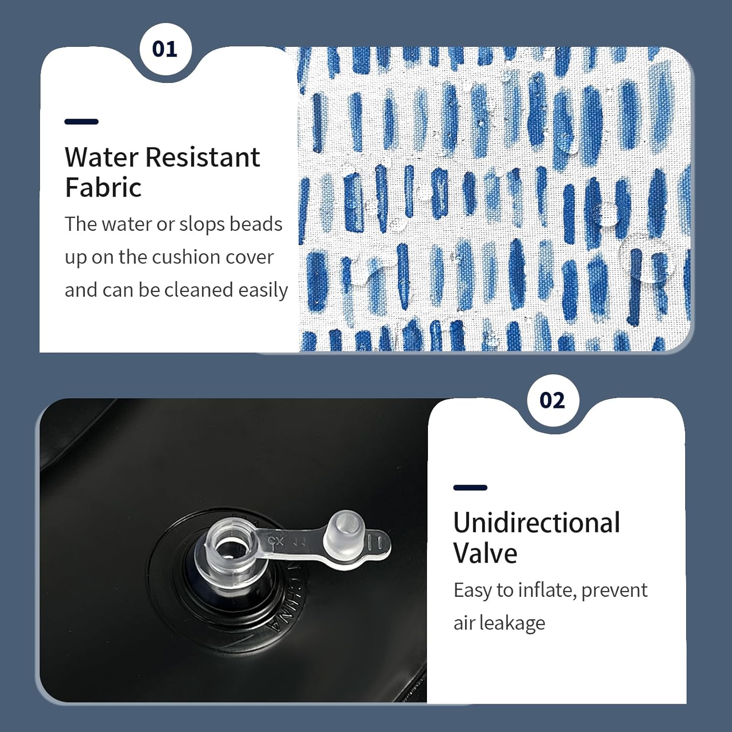 • 【EASY to INFLATE】 - Begin by placing the inflatable component into the cover prior to inflation. Utilize the foot pump to inflate it to approximately two-thirds of its size, then zip the cover halfway. Continue inflating until fully expanded and securely zip it closed. Ensure that the valve is properly sealed