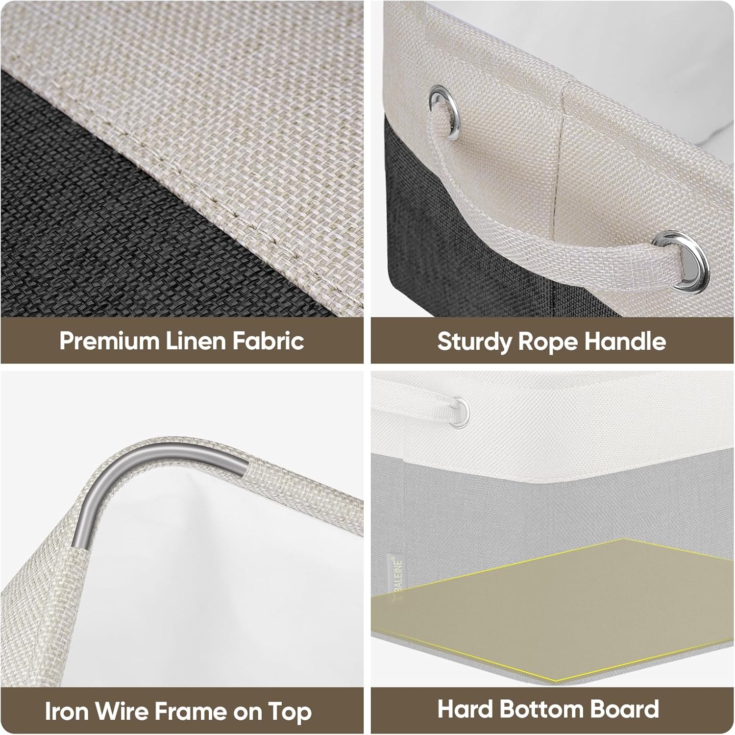 • [DURABLE MATERIAL] Made from premium quality linen fabric, storage baskets for shelves are built to last. The fabric is sturdy, resistant to wear and tear, and easy to clean. You can simply wipe them down with a damp cloth, and these organizer bins will look as good as new!