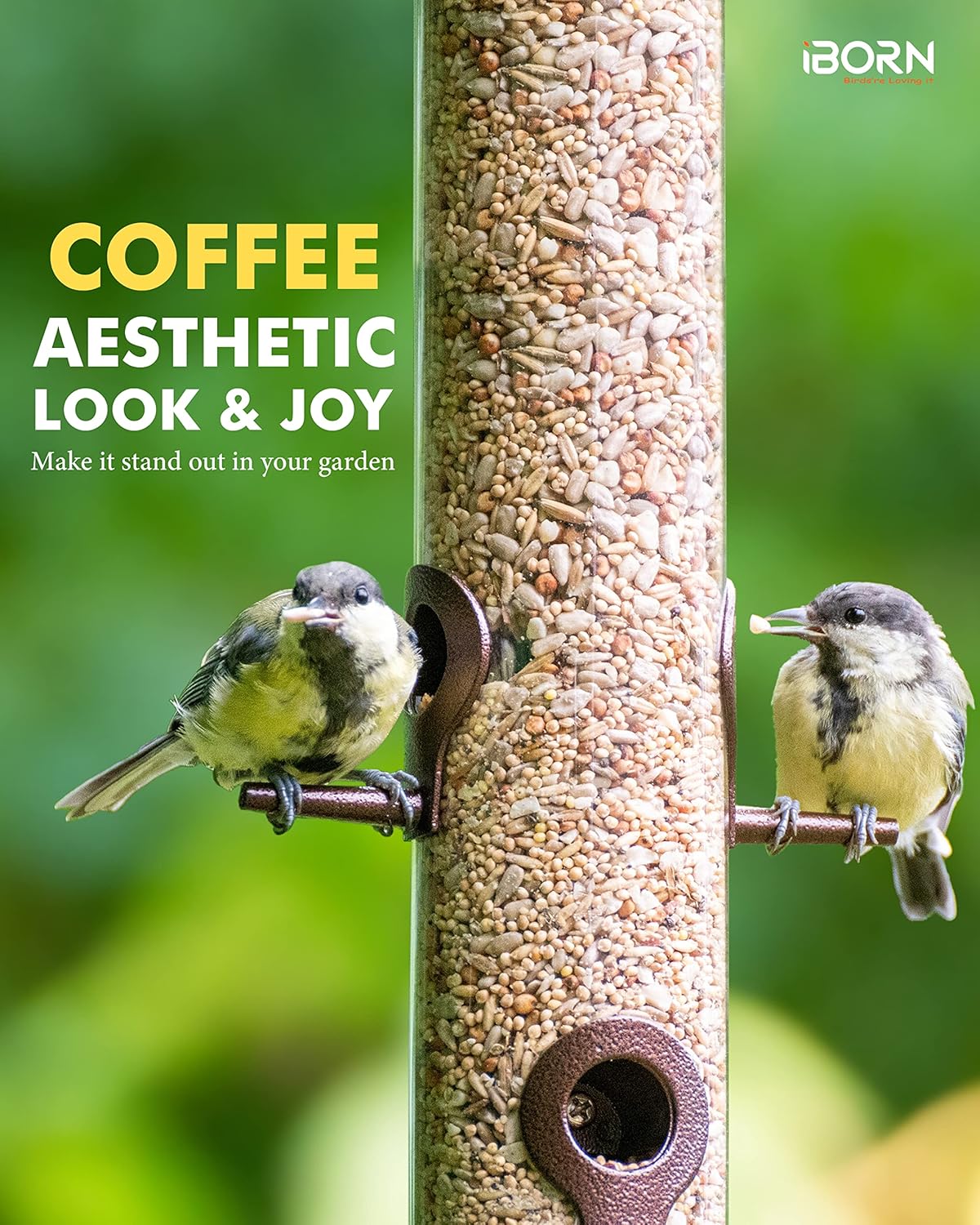 • 【Coffee Power Coated,No Color Fading, Great for all the year round feeding】Wear and Worn, Never Rust. All Metal top, base, feeding ports, perches, coffee power-coat,rust resistant, robust construction to sustain all weather days. It features royal-stylistic coffee outlook, traditional design inviting more feather birds to your garden, add more liveness to your garden life.