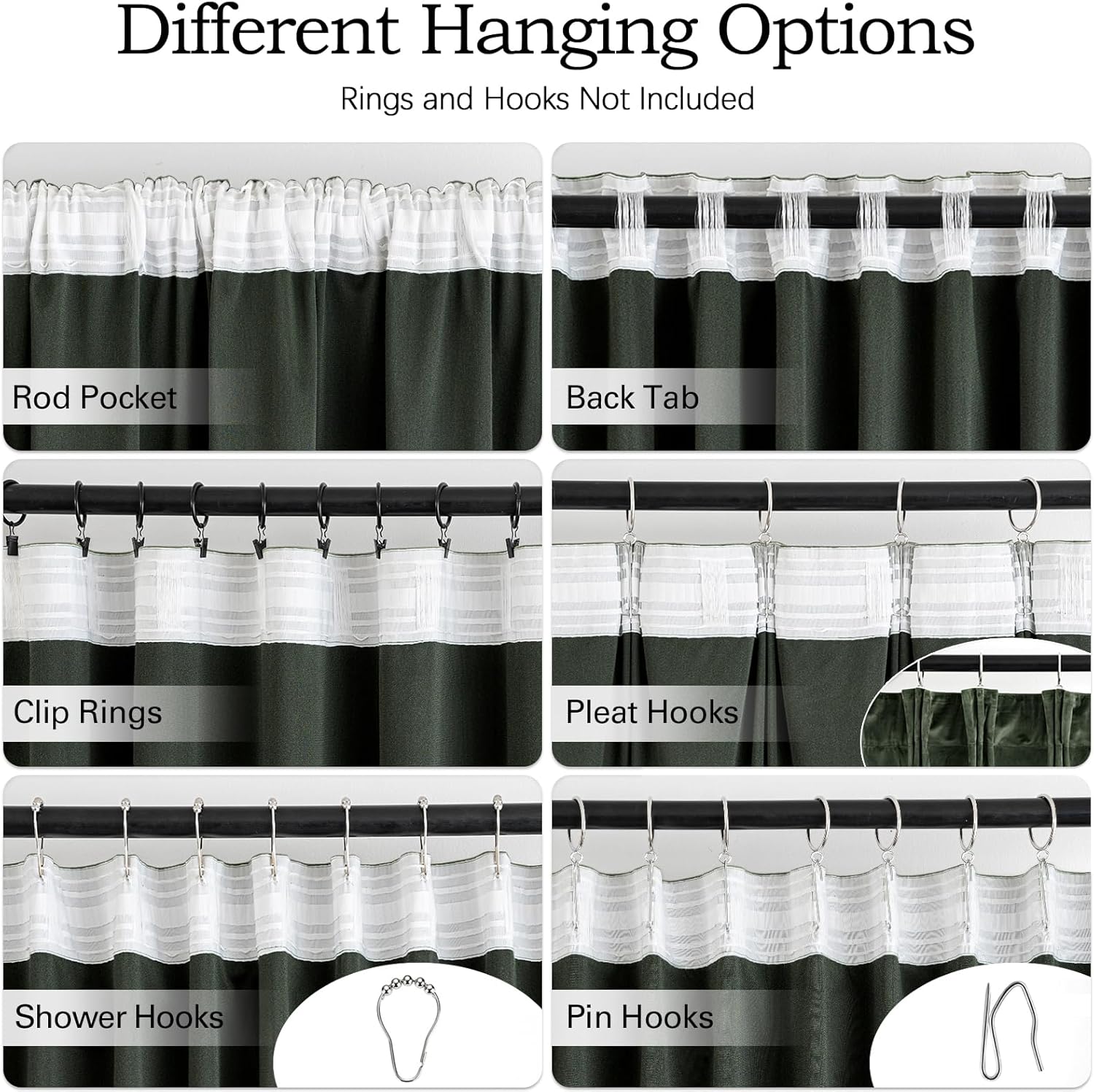 • HANGING OPTIONS: Each curtain panel has 3-in-1 top style design: rod pocket, back tab and pinch pleat. Back loop (2.3 inch) and rod pocket (3.1 inch) fit most standard rod. Curtains also can be hung with clip rings or curtain hooks. 3 ways to meet your various needs.