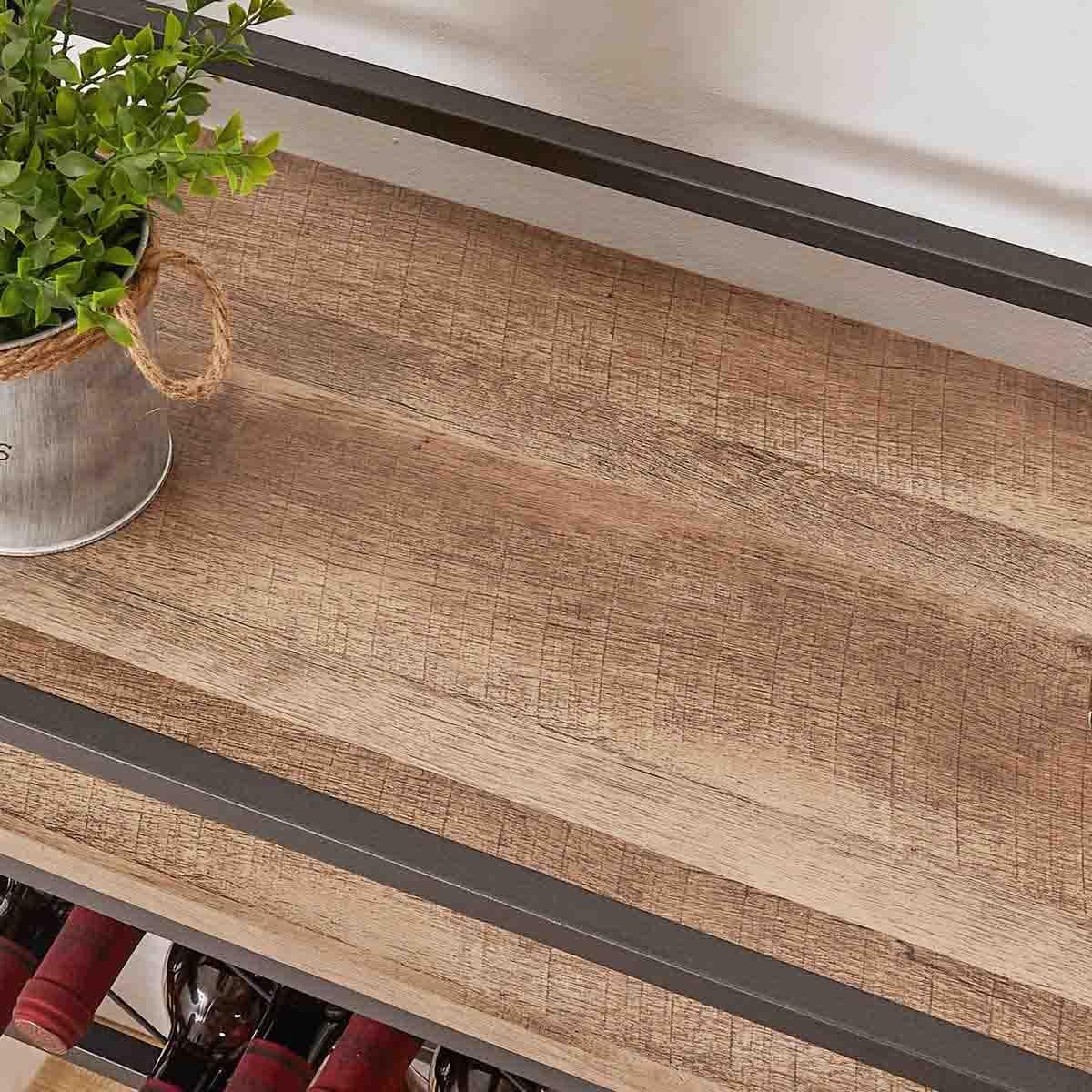 • [Sturdy & Weight Capacity]: Thanks to the material and well-structured design, heavier wood provides a sturdier base, and metal rails wrap around each shelf to stop bottles of liquor or wine from sliding off while rolling. Additionally, there are 2 support tubes under the top and bottom shelves that significantly increase the weight capacity. Each shelf can easily hold up to 150 lbs respectively.