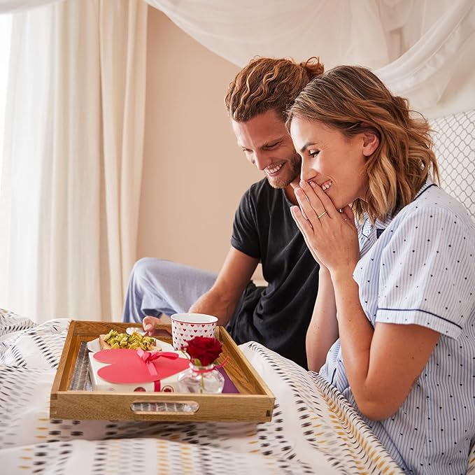 • MULTIFUCTIONAL LARGE WOOD TRAY: This decorative large serving tray is perfect for serving breakfast, lunch, dinner snacks appetizers, or any meal on your bed, dining table, coffee table, or anywhere you want! Ideal for kitchen, commercial use, family events, parties, offices, and more!