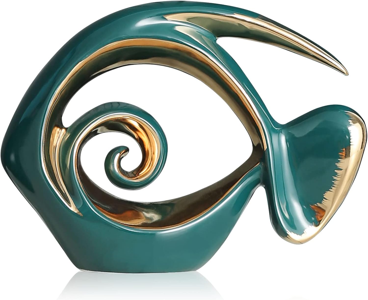 • High-Quality Ceramic Construction: Made with premium ceramic materials and expert craftsmanship, this green gold ceramic fish sculpture features an elegant lustrous finish, a smooth texture, and is easy to clean and maintain.