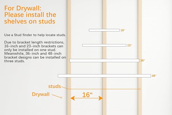 • NOTE:For wooden or brick walls, use the included hardware. For drywall, please purchase the appropriate hardware separately