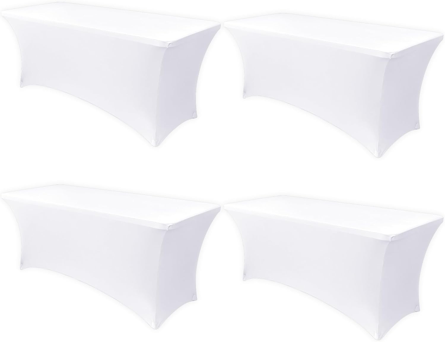 Obstal 6ft Stretch Spandex Table Cover - 4 Pack Universal Rectangular Fitted Tablecloth Protector for Wedding, Banquet and Party, White