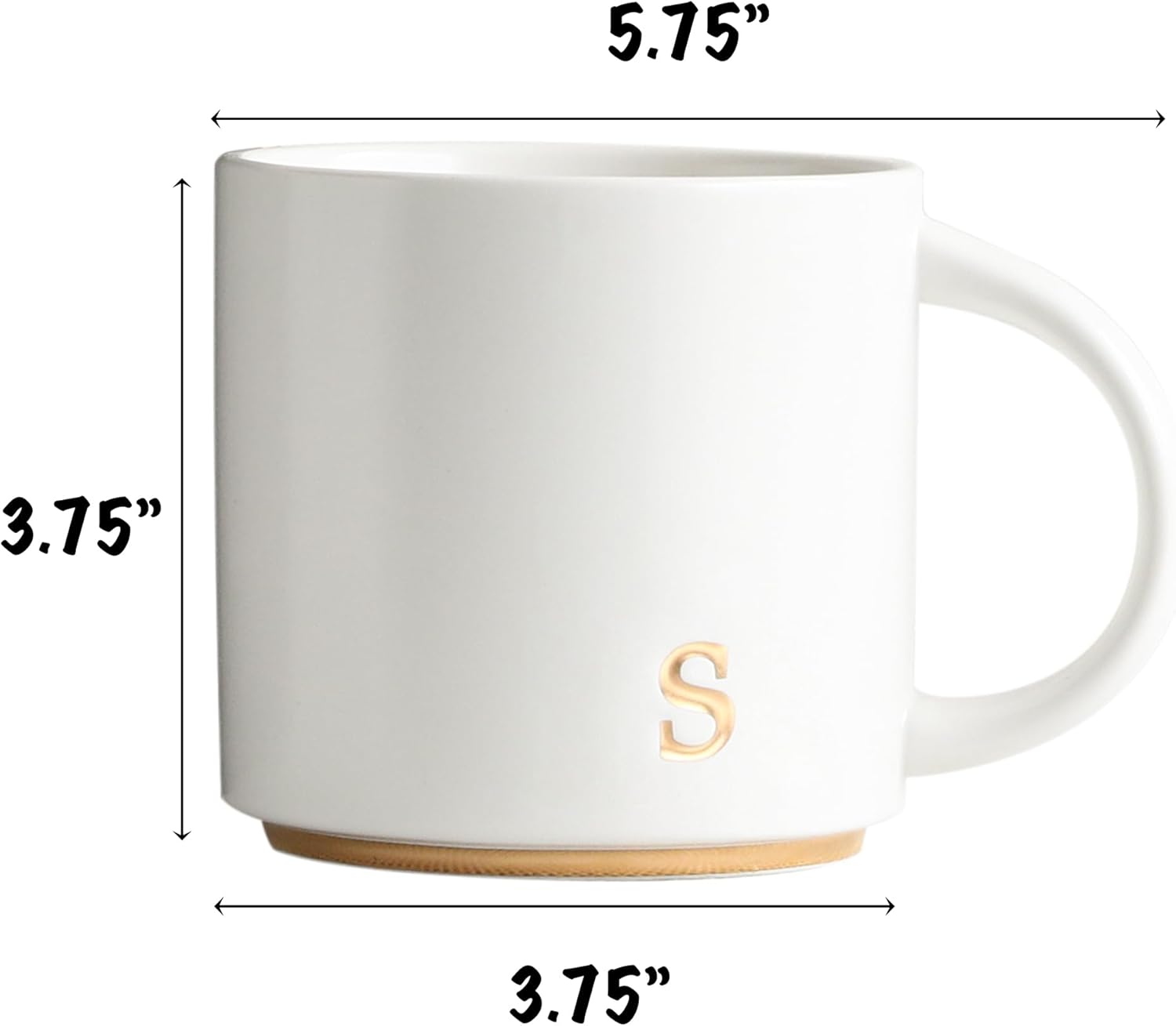 COLLECTIVE HOME - Monogram Ceramic Mugs, 15 oz Golden Initial Coffee Cups, Elegant Alphabet Tea Mugs, Elegant Personalized Mug with Gift Box, Luxurious Cups for Office and Home (s)