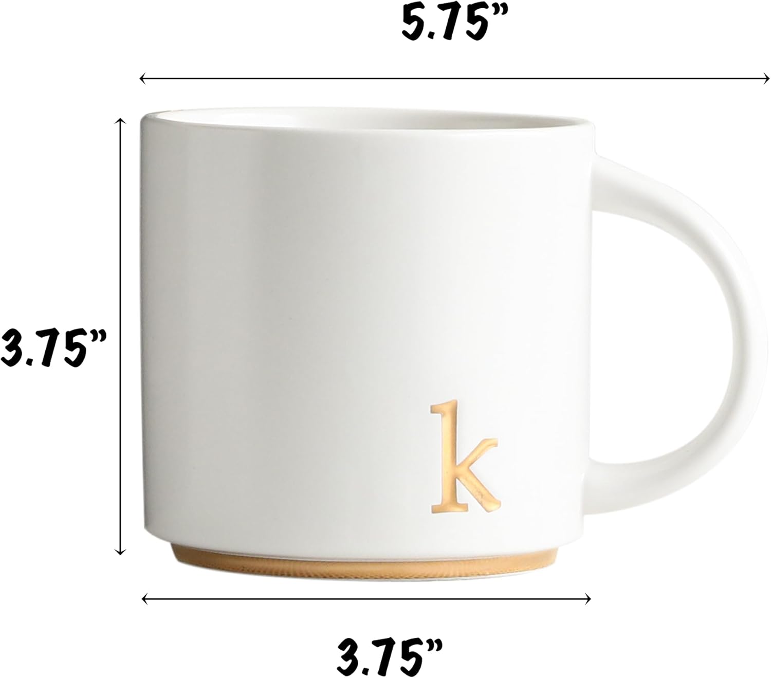 COLLECTIVE HOME - Monogram Ceramic Mugs, 15 oz Golden Initial Coffee Cups, Elegant Alphabet Tea Mugs, Elegant Personalized Mug with Gift Box, Luxurious Cups for Office and Home (k)