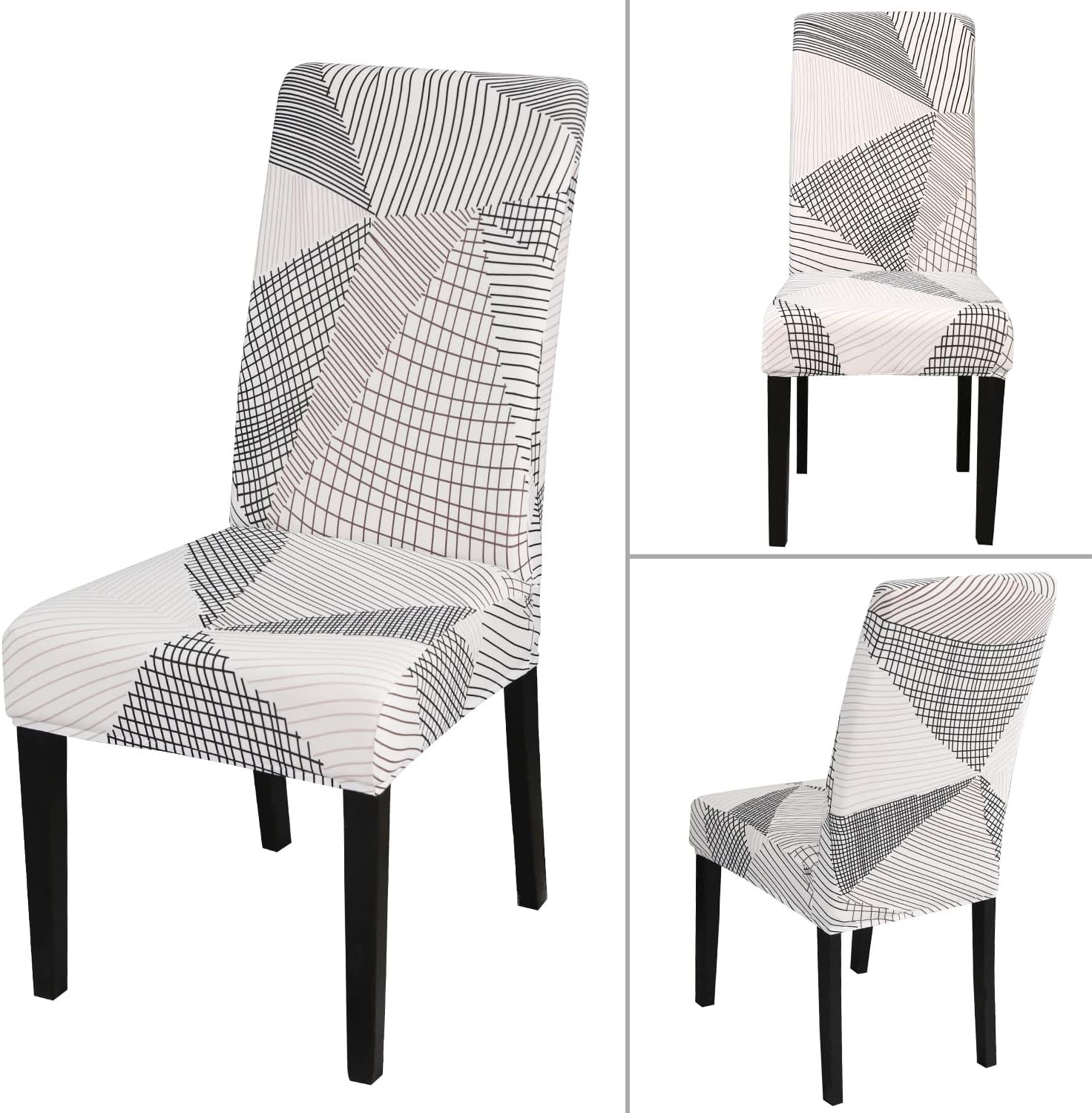 JQinHome White Chair Covers for Dining Room Set of 4, High Stretch Removable Washable Parsons Chair Slipcover for Home Party Hotel Wedding Ceremony (4PCS, Geometric)