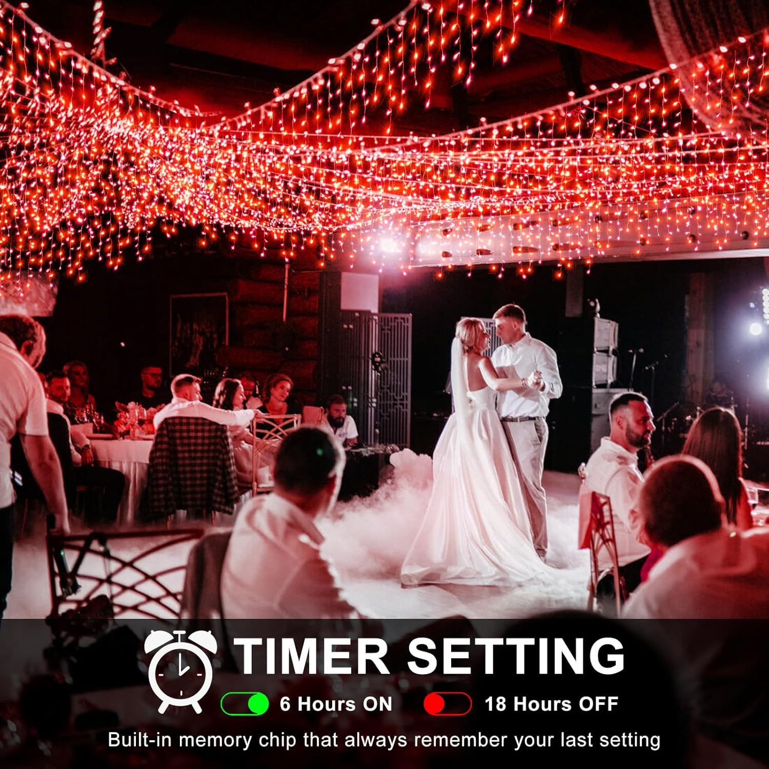 • 【Convenient Timer Function】Activate the timer by pressing the adapter button for 3 seconds. The lights will automatically turn on for 6 hours and off for 18 hours, saving you the hassle of manual operation. These indoor icicle lights can be easily draped or hung on outdoor roofs, yards, windows, patios, gardens, fences, or in indoor bedrooms, instantly transforming the space into a dreamy, romantic haven.