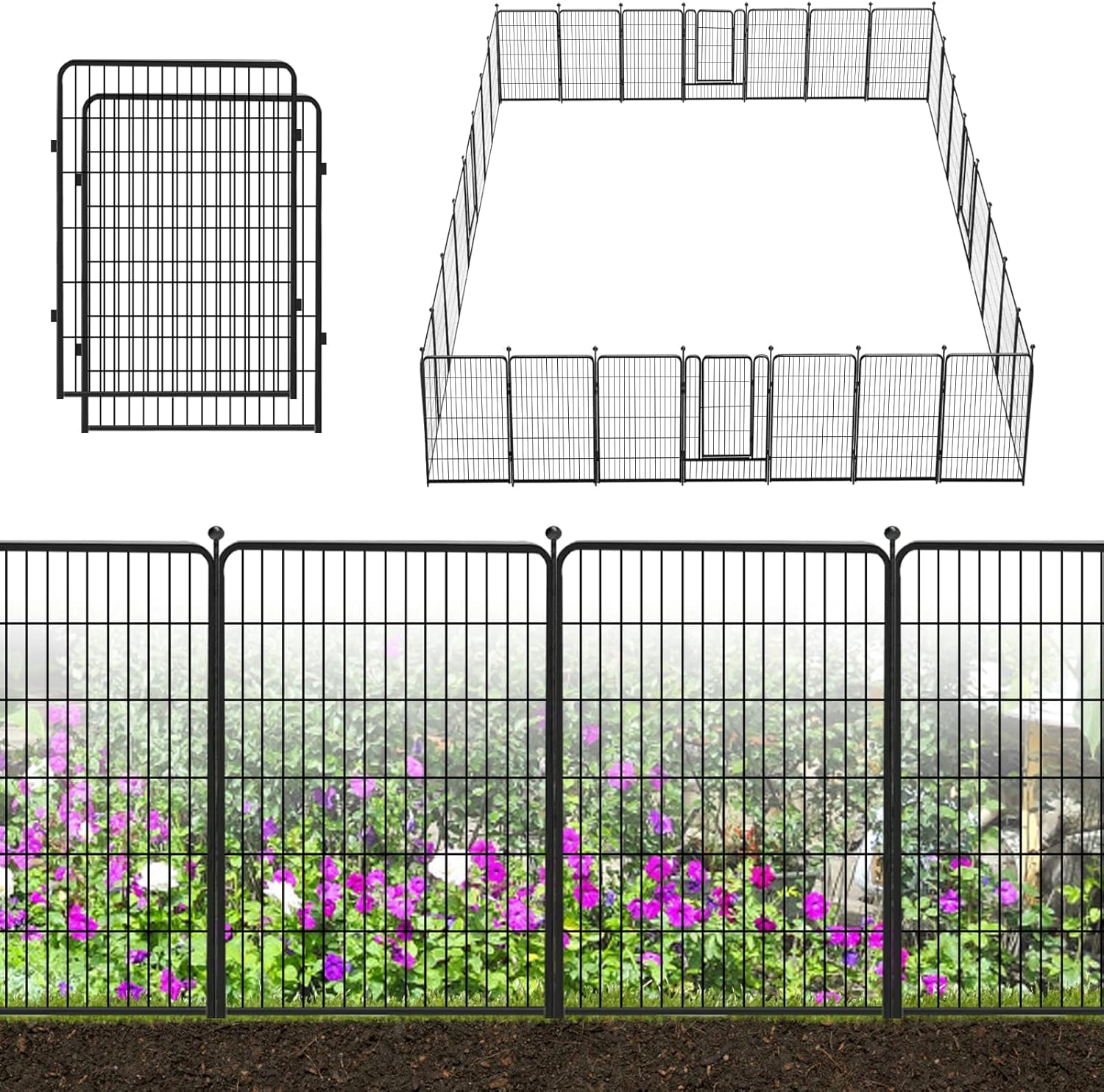 • Secure & Safe Design: The garden fence panels upgrade with ball top, easy to install and prevent getting hurt if used for pets; Heavy duty no dig fence for dogs stops animals to destroy plants, flower and vegetables. The garden fence with gate equipped with secure lock, make a convenient entrance and exit, keep animals like dogs, rabbits, chicken or duck out of your garden