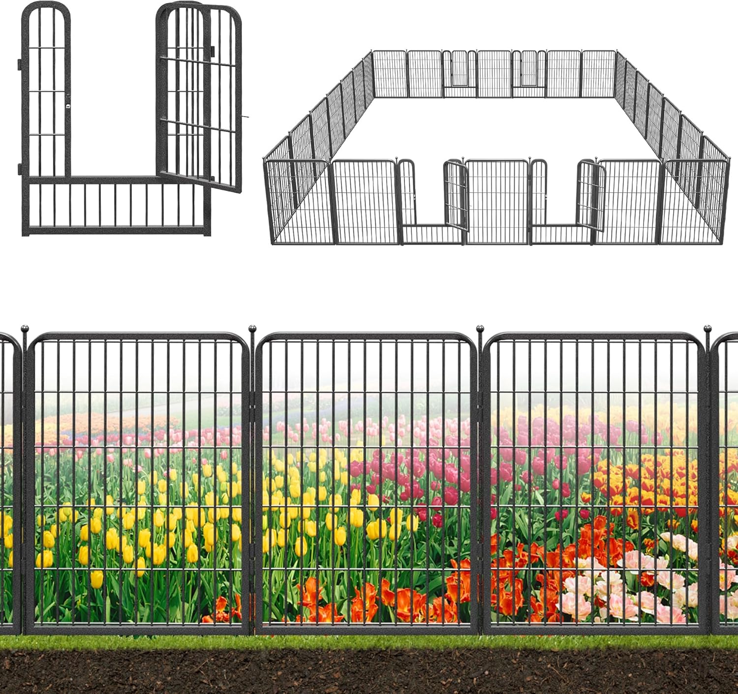 • Rust-proof & Sturdy Construction: Jhsomdr garden fence features double powder coated finish, rustproof, less maintenance, longer use. The metal fence panels are made of heavy duty iron and thick wire, no tearing, chewing, cracking and bending. The fence can work well for long time in bad weather