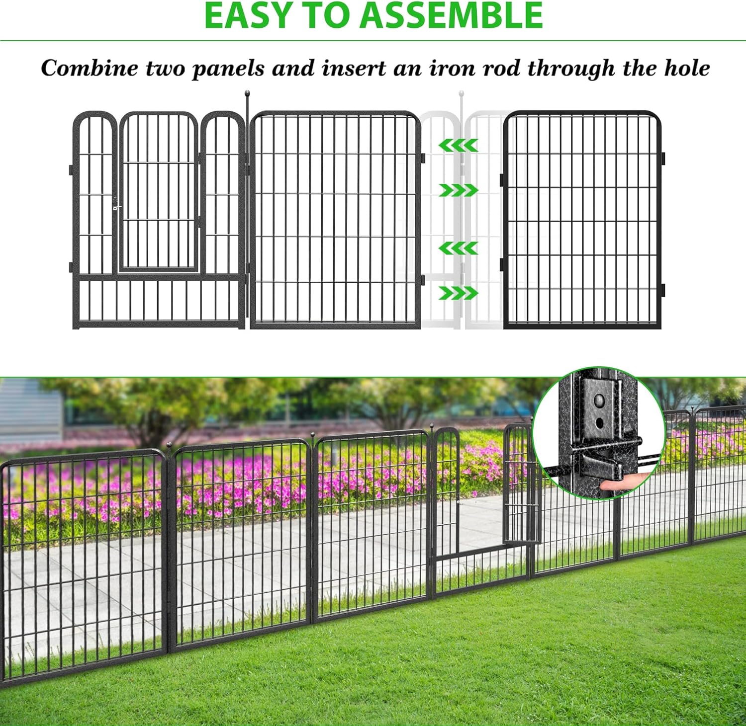 • Secure & Safe Design: The garden fence panels upgrade with ball top, easy to install and prevent getting hurt if used for pets; Heavy duty no dig fence for dogs stops animals to destroy plants, flower and vegetables. The garden fence with gate equipped with secure lock, make a convenient entrance and exit, keep animals like dogs, rabbits, chicken or duck out of your garden