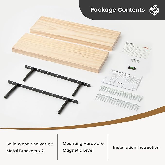 • Easy to Install - We provides everything you need for a hassle-free installation. Inside, you will find a level, screws for the wall, drywall anchors, screws to tighten the shelf, two metal brackets, and two exquisite handcrafted pine shelves. A detailed installation guide accompanies these components, ensuring a smooth process. Please contact us at Amazon or Fun Memories with any questions or concerns. Your satisfaction is important to us!