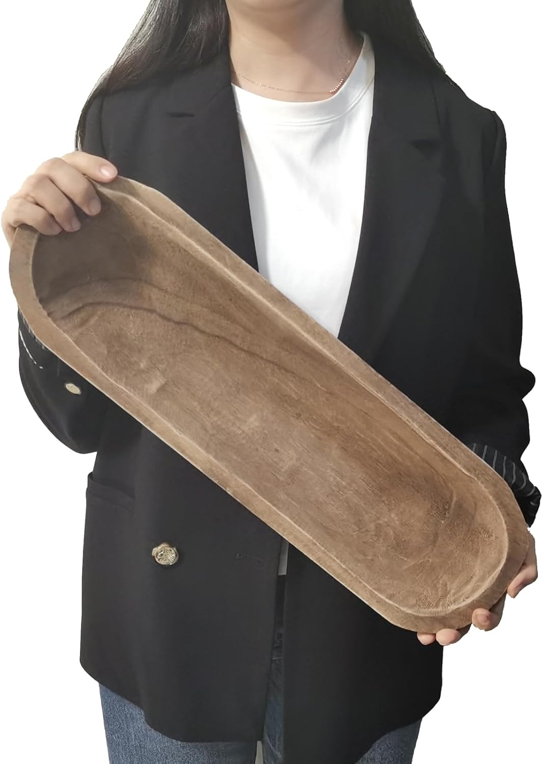Wooden Dough Bowl Decor, Vintage Wooden Bowl Hand Carved Home Decor for Dining Table Center, Living Room, Kitchen Decor. (20inch brown)