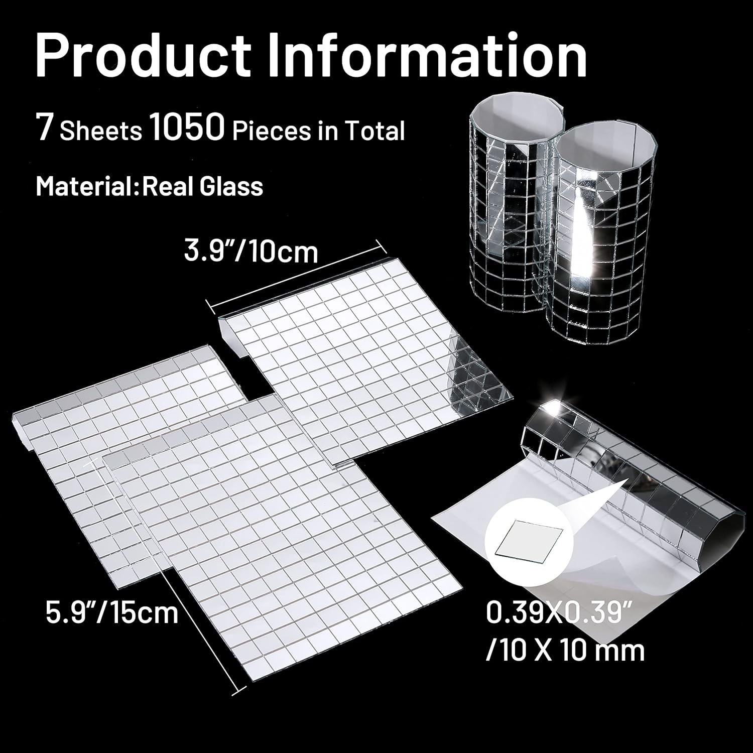 • 1050 PCS Disco Stickers: Come with 7 sheets mirror tile sheets, each sheet contains 150 pieces mosaic tiles, you will get 1050 pieces of mosaic tiles in total. DIY as you like, bring more creative options to your crafts