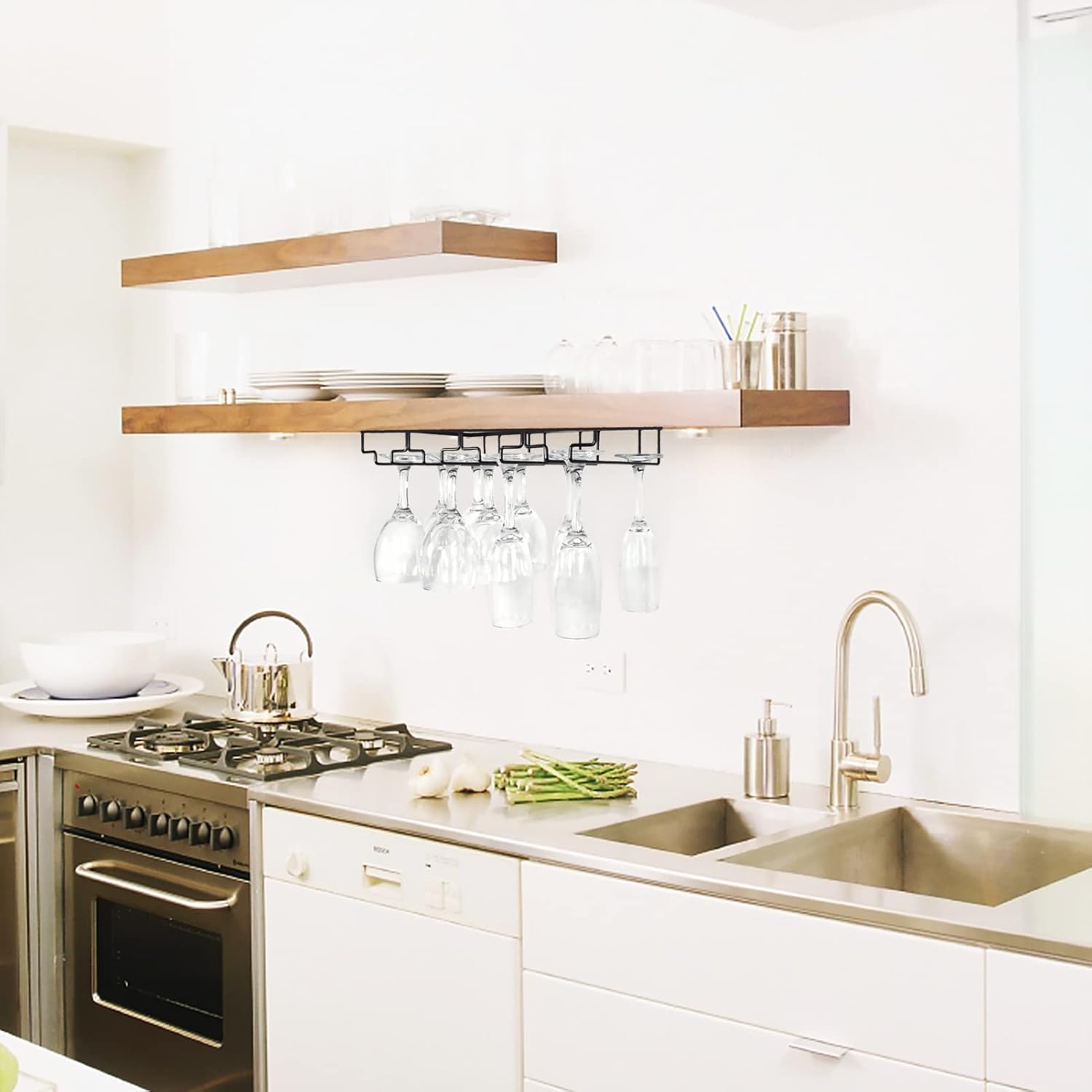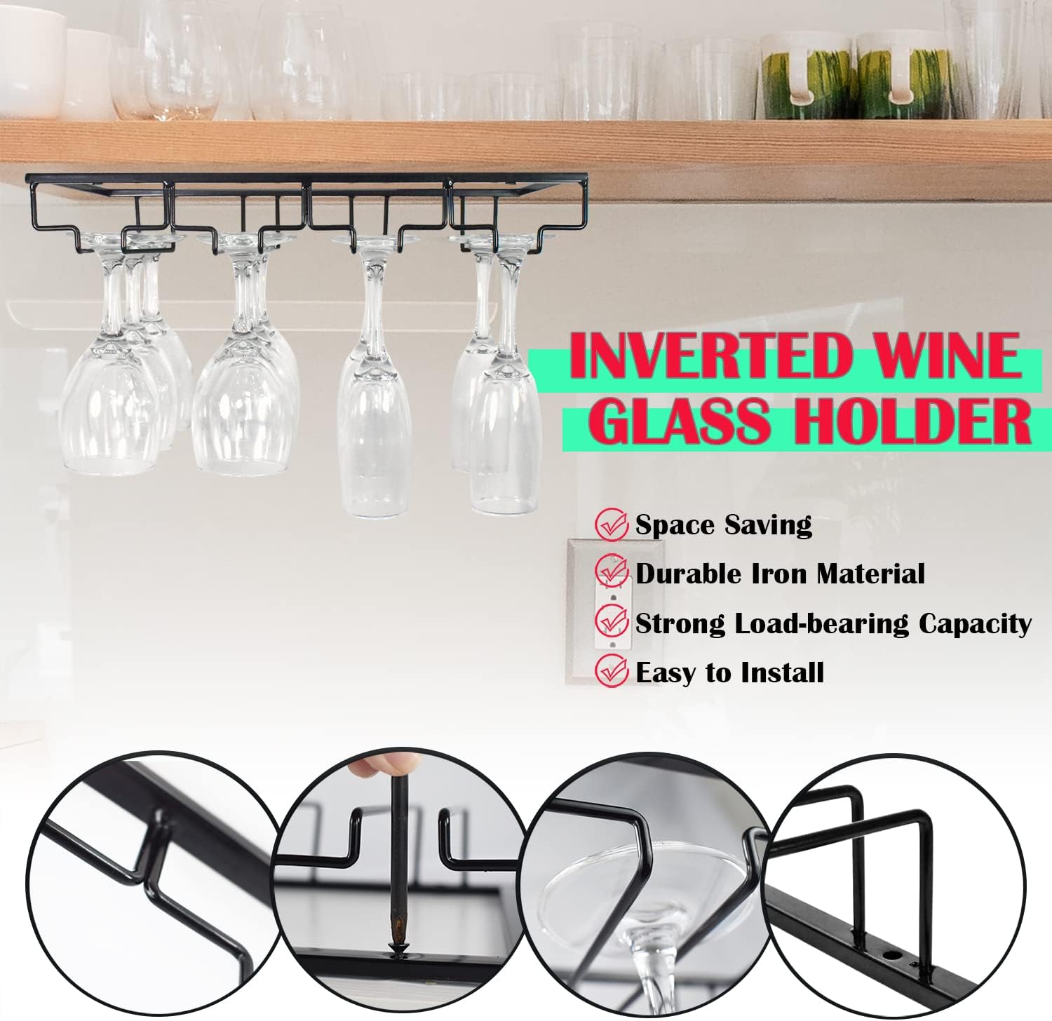 • 【EASY TO INSTALL】Each glass rack with holes,comes with the mounting hardware.When you are installing this wine glass rack, you only need to use a screwdriver to screw the provided screws into the wood of the cabinet. No need to drill holes under the cabinet , it can be easily installed in a few minutes