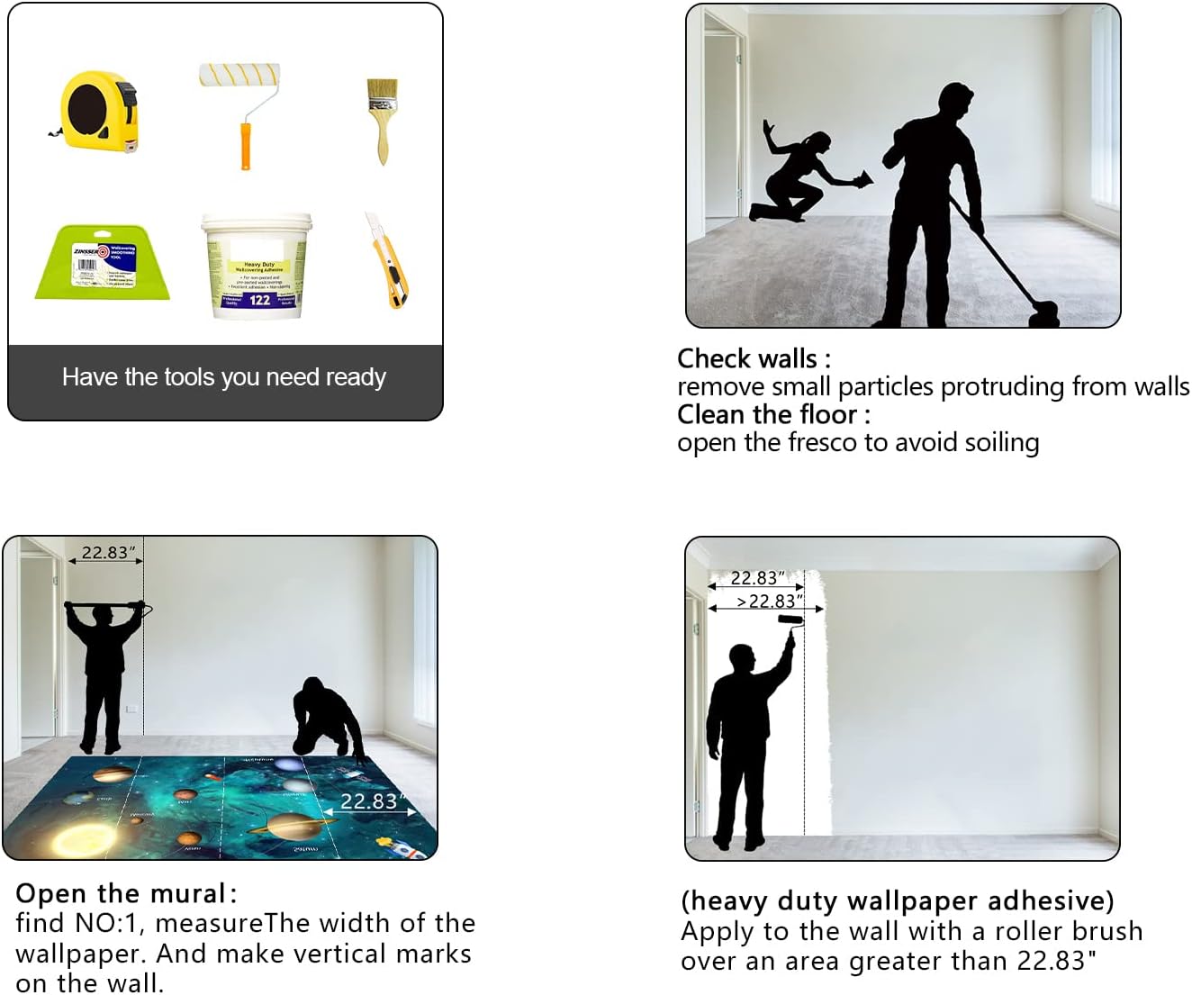 • It's easy to install: at the bottom of each mural we have a numbered sequence, You can refer to the instructions we provided and the main picture 6-7,just match the numbers and you'll be amazed!