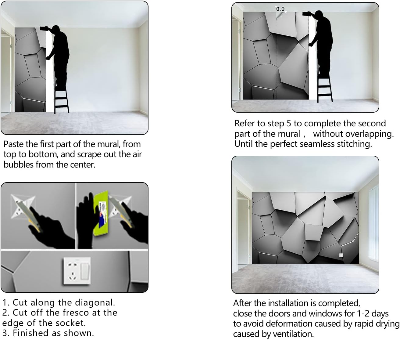 • It's easy to install: at the bottom of each mural we have a numbered sequence, You can refer to the instructions we provided and the main picture 6-7,just match the numbers and you'll be amazed!