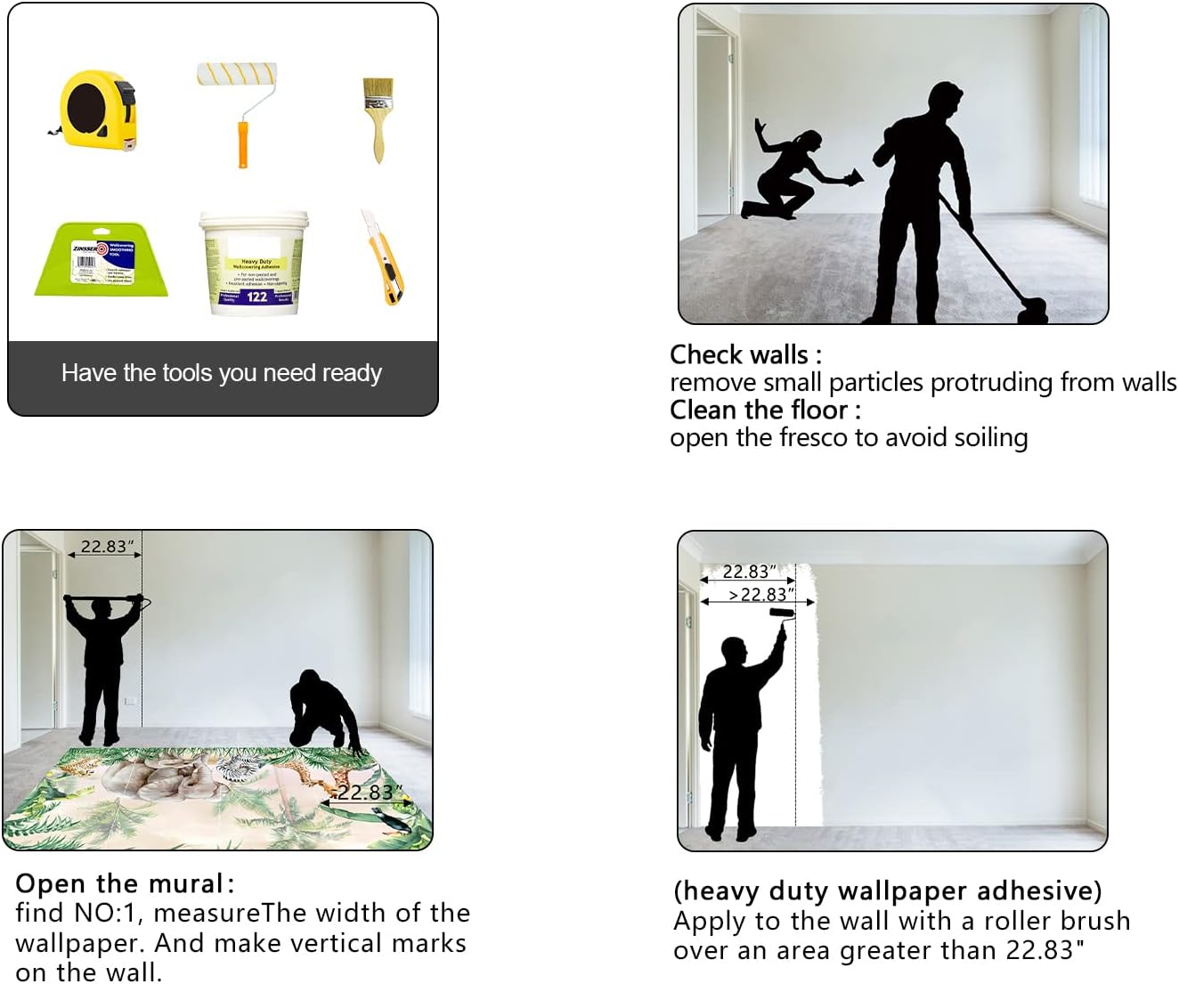 • This mural is It's not Peel and Stick . Additional Purchase required ( thick wallpaper adhesive ) please Check if is the product you need . thanks.