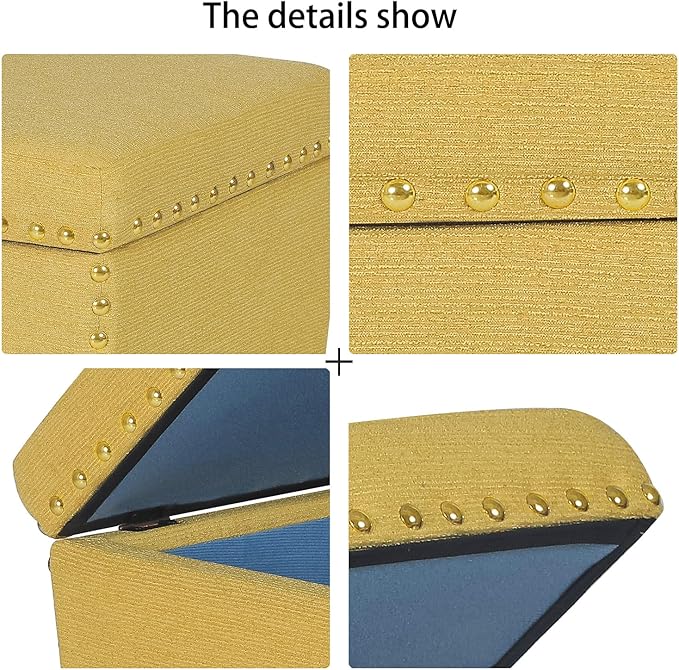 • HIGH QUALITY MATERIAL: Made with thick upholstery padding, durable faux linen fabric and safety lift top hinge; with nailhead trim, rounding out the design with a traditional touch.