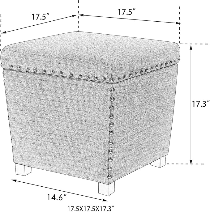 • LARGE STORAGE COMPARTMENT: Measures 17.5 by 17.5 by 17.3 inches (LxWxH), it can provide you enough space for your blanket and throw pillows, etc. Great fit for your home decor, also works very well as small storage chest, window bench and additional seating for your guest.
