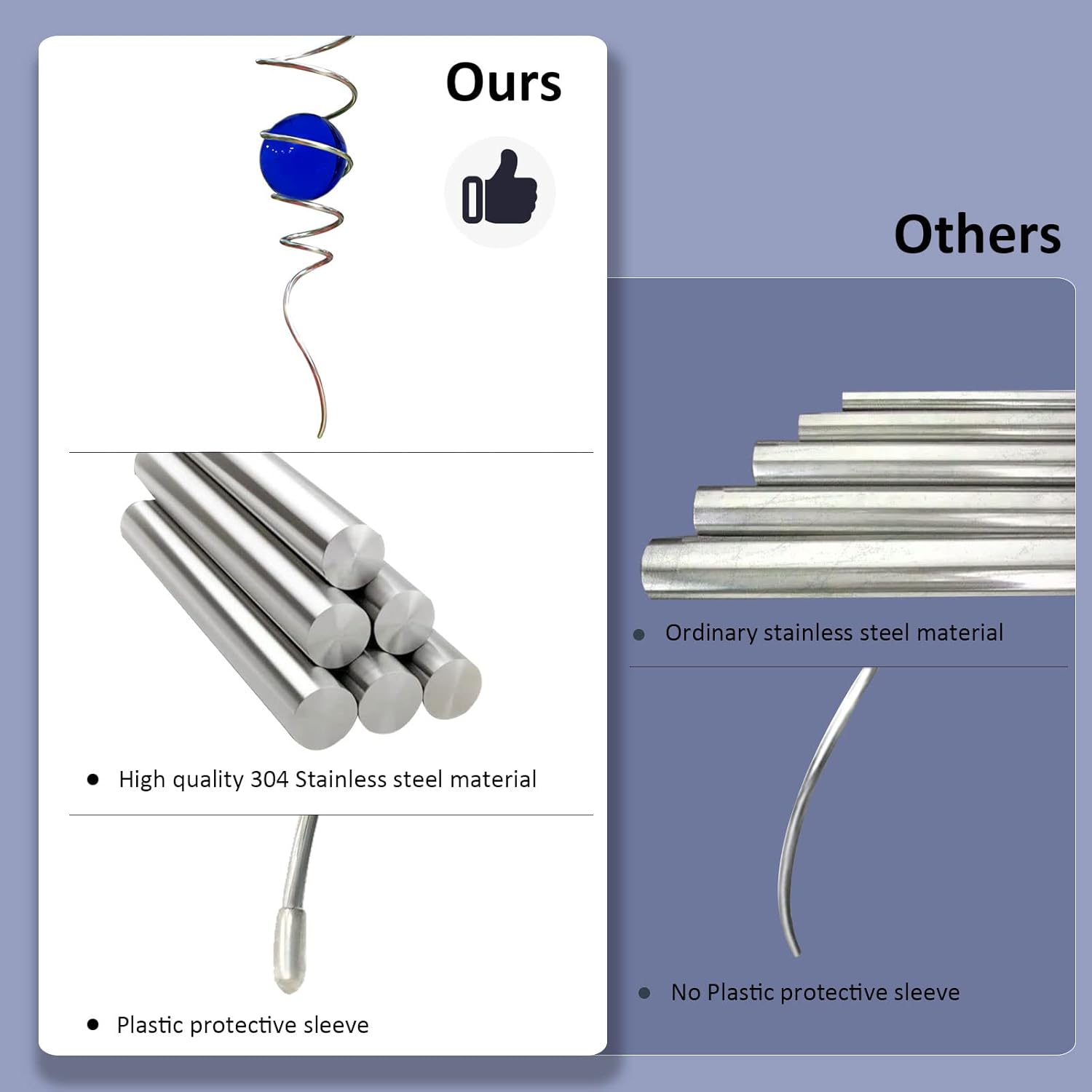 • 【High Quality】11inch heightWind Spinner Stabilizer spiral tail made of #304 stainless steel wire,the 2inch colored ball made of pure solid color glass material,have good weather resistant,no fading under sunshine. Better quality than iron material with nickle plating and painting color glass ball in the market.