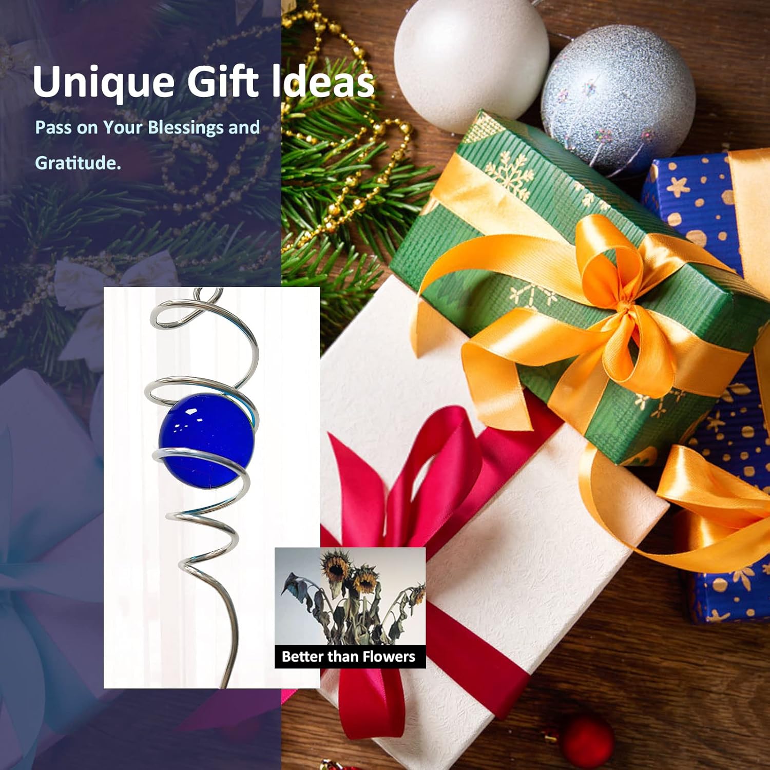 • 【Unique Spiral Design】The gazing ball spiral tail is an unique hanging ornament ,Also it can help to stabilize 3D wind spinners or yard decor from swing when it rotate.When the spiral tail rotates to the left, the glass ball seems to move upwards,when the spiral tail rotates to the right, the glass ball seems to moves downward,the glass ball seems to like floating and dancing in air, presenting a magical optical illusion!