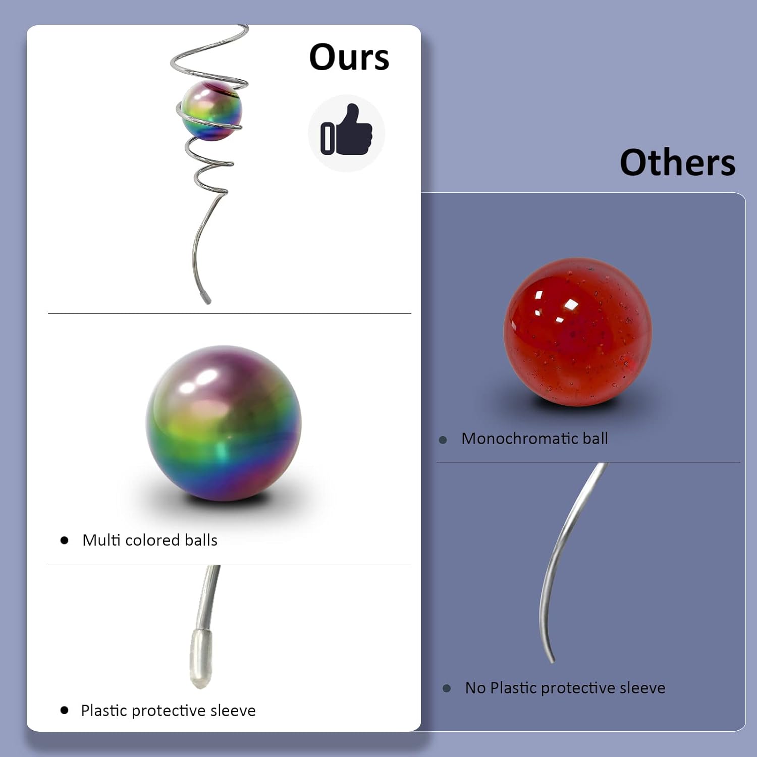 • 【High Quality】11inch height spiral tail made of #304 stainless steel wire,the 2inch colored ball made of pure solid color glass material,have good weather resistant,no fading under sunshine.Better quality than iron material with nickle plating and painting color glass ball in the market.