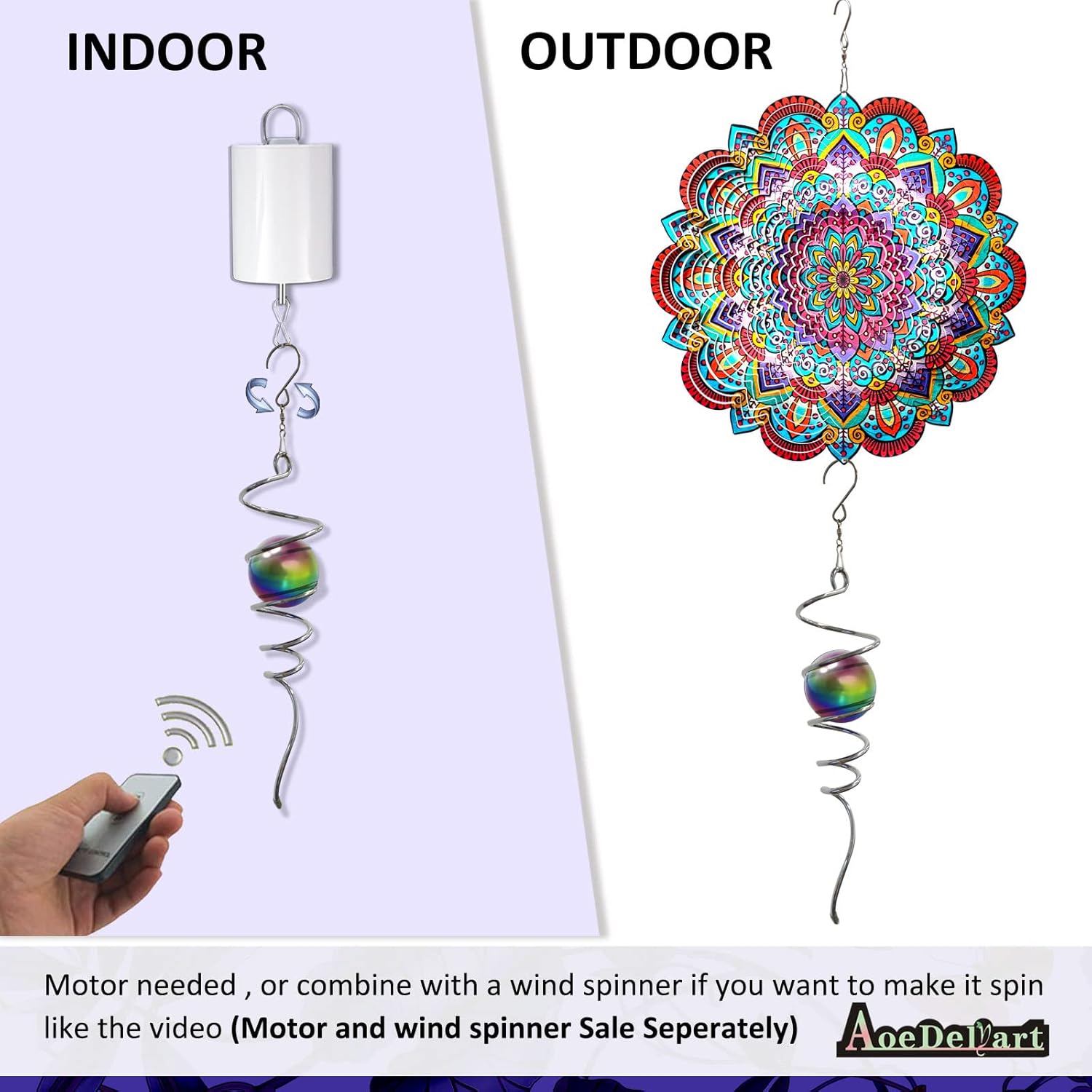 • 【Easy To Position】The Spiral can't spin by itself ,if you want to make it spin like the video ,need add 1pc motor (not include) ,or combine it with a wind spinner or any rotatable hanging ornament to help it rotate. Come with 1pc 2 inch colored Stainless Steel orb(not paint), 1pc silver color spiral tail twister,and 1pc swivel hook accessory, ready to hang and enjoy.