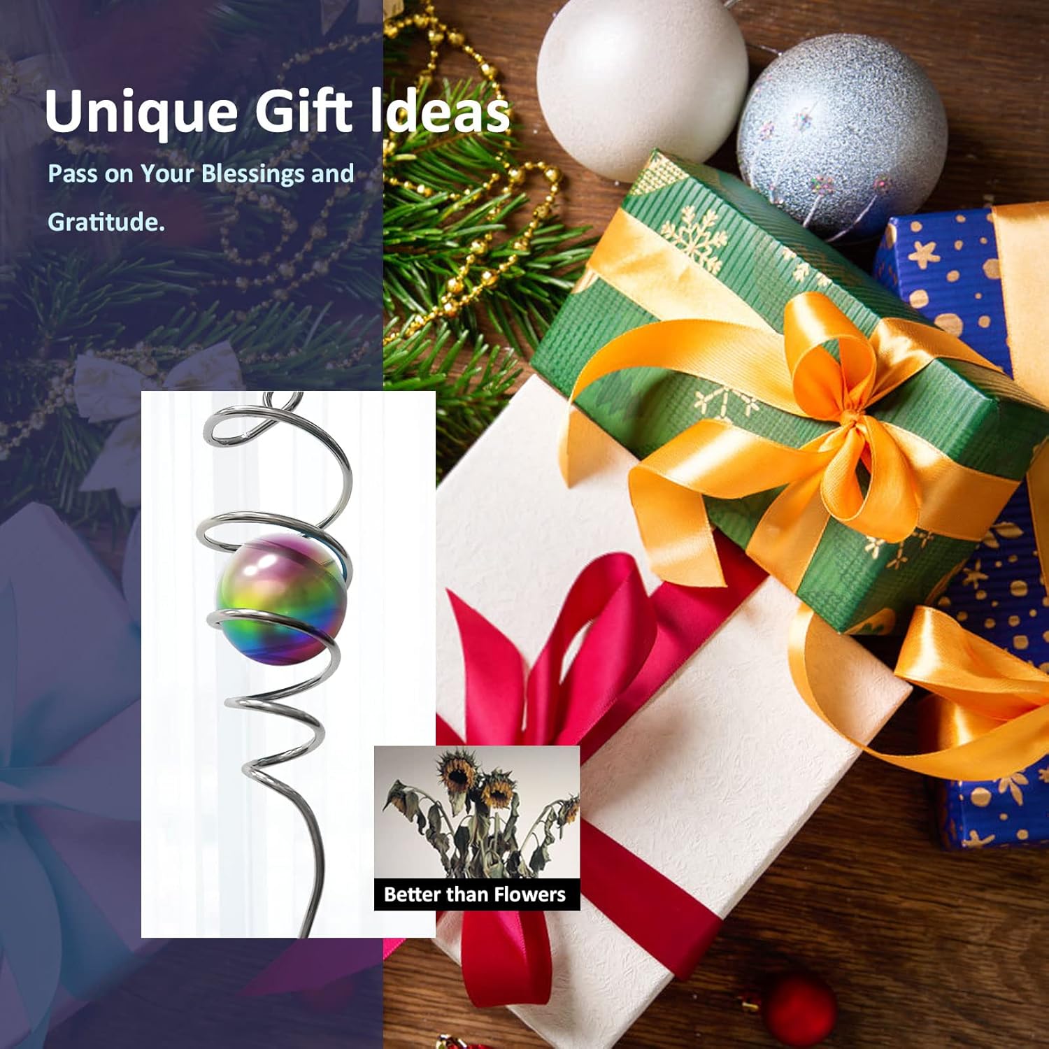 • 【Unique Spiral Design】The gazing ball spiral is an unique hanging ornament ,Also it can help to stabilize 3D wind spinners or yard decor from swing when it rotate.When the spiral tail rotates to the left, the glass ball seems to move upwards,when the spiral tail rotates to the right, the glass ball seems to moves downward,the glass ball seems to like floating and dancing in air, presenting a magical optical illusion!
