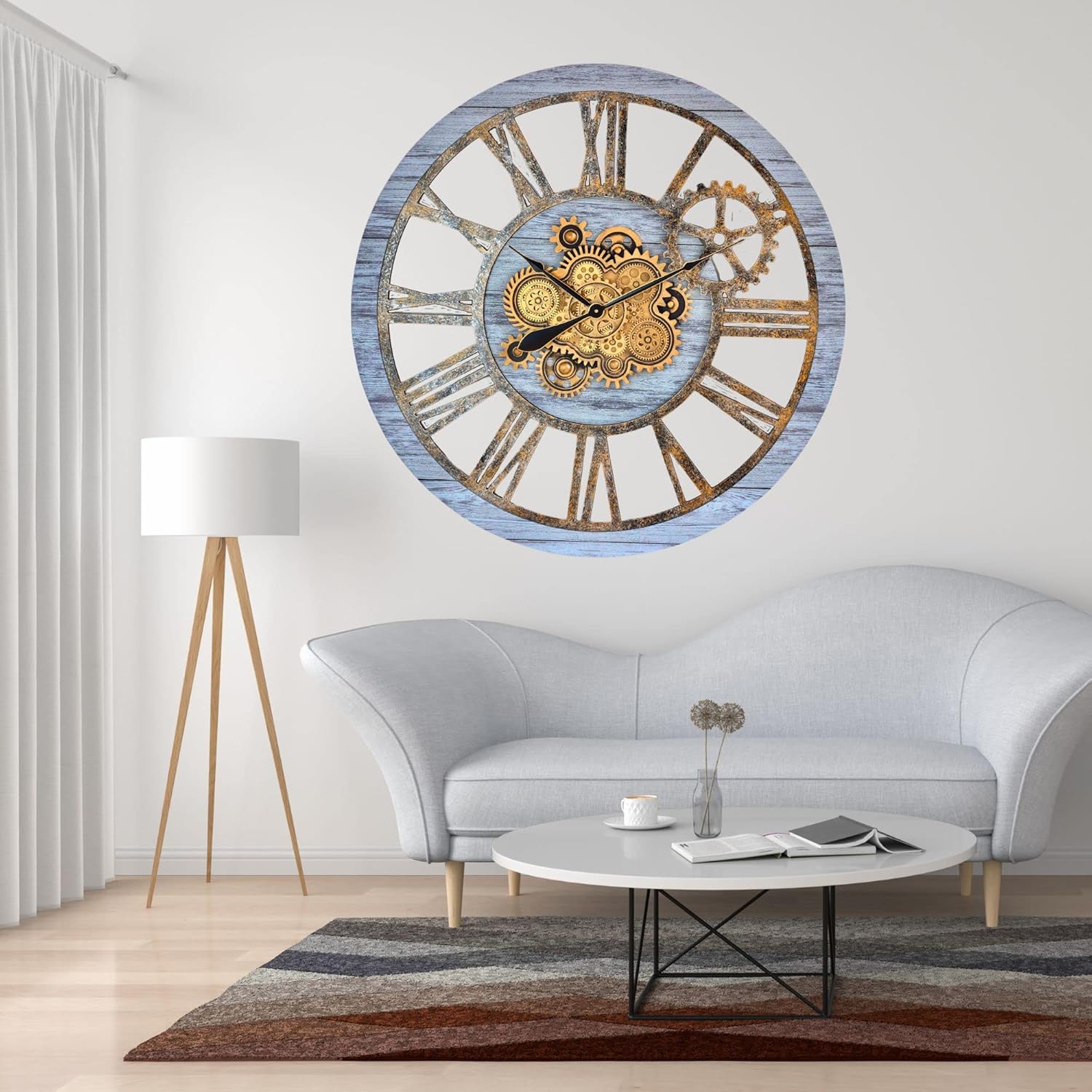 The Gears Clock 36'' Inch Real Moving Gear Wall Clock Vintage Industrial Oversized Rustic Farmhouse (Silver Grey)