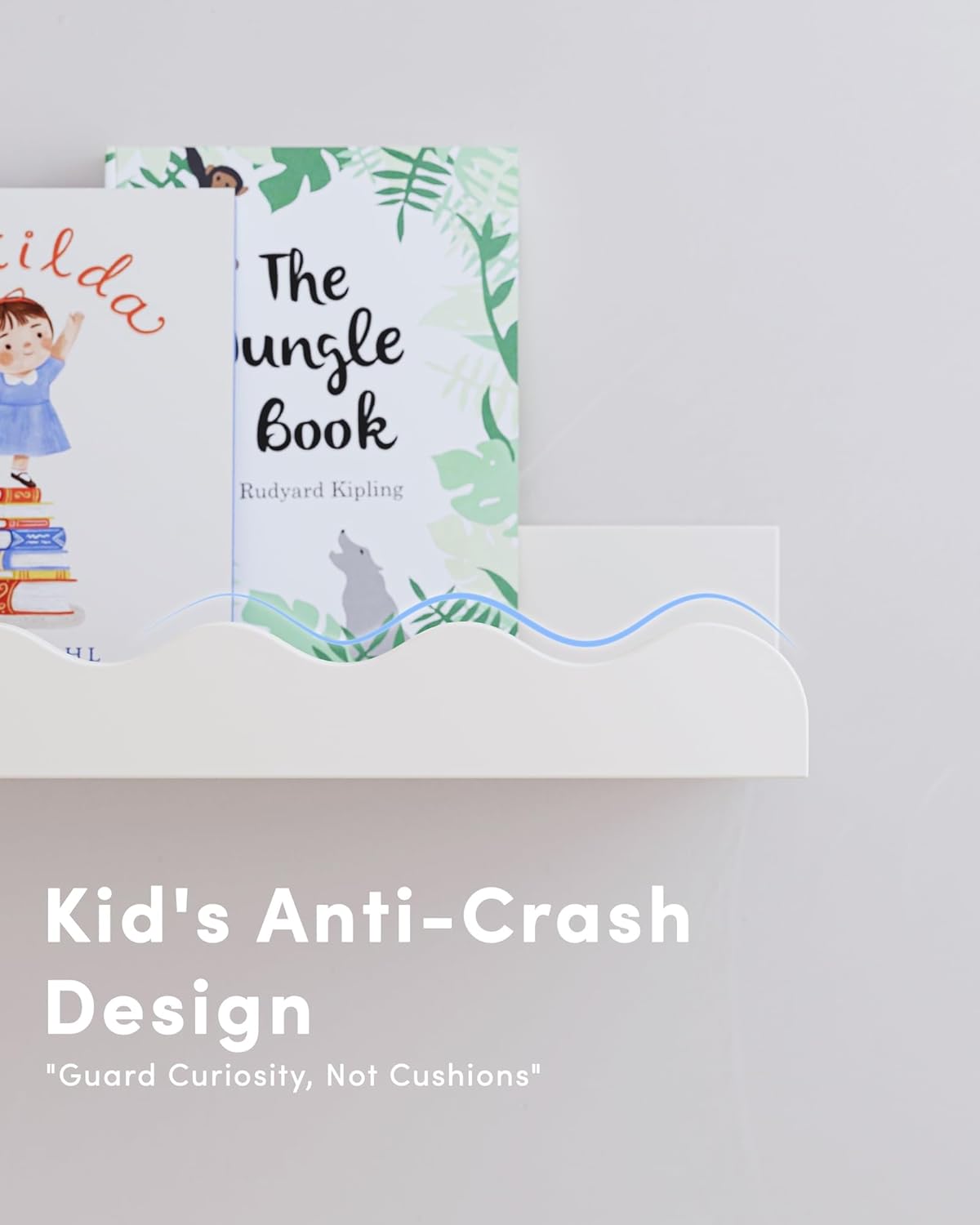 • Multi-functional Design: This set of four Kids' Bookshelves serves as both book storage and a picture ledge shelf, providing a versatile solution for your child's room. It allows you to showcase favorite books, toys, and photo frames all in one place.
