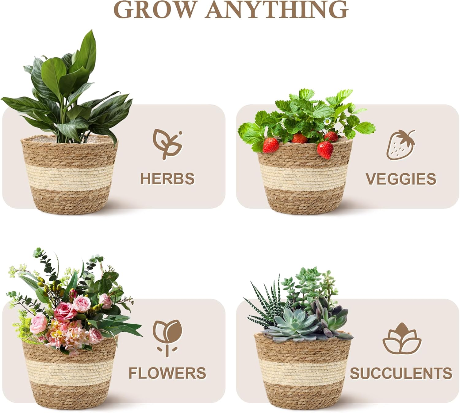 • Handcrafted Planters: The plant baskets are handmade using eco-friendly water hyacinth and corn stalk for a rustic look.