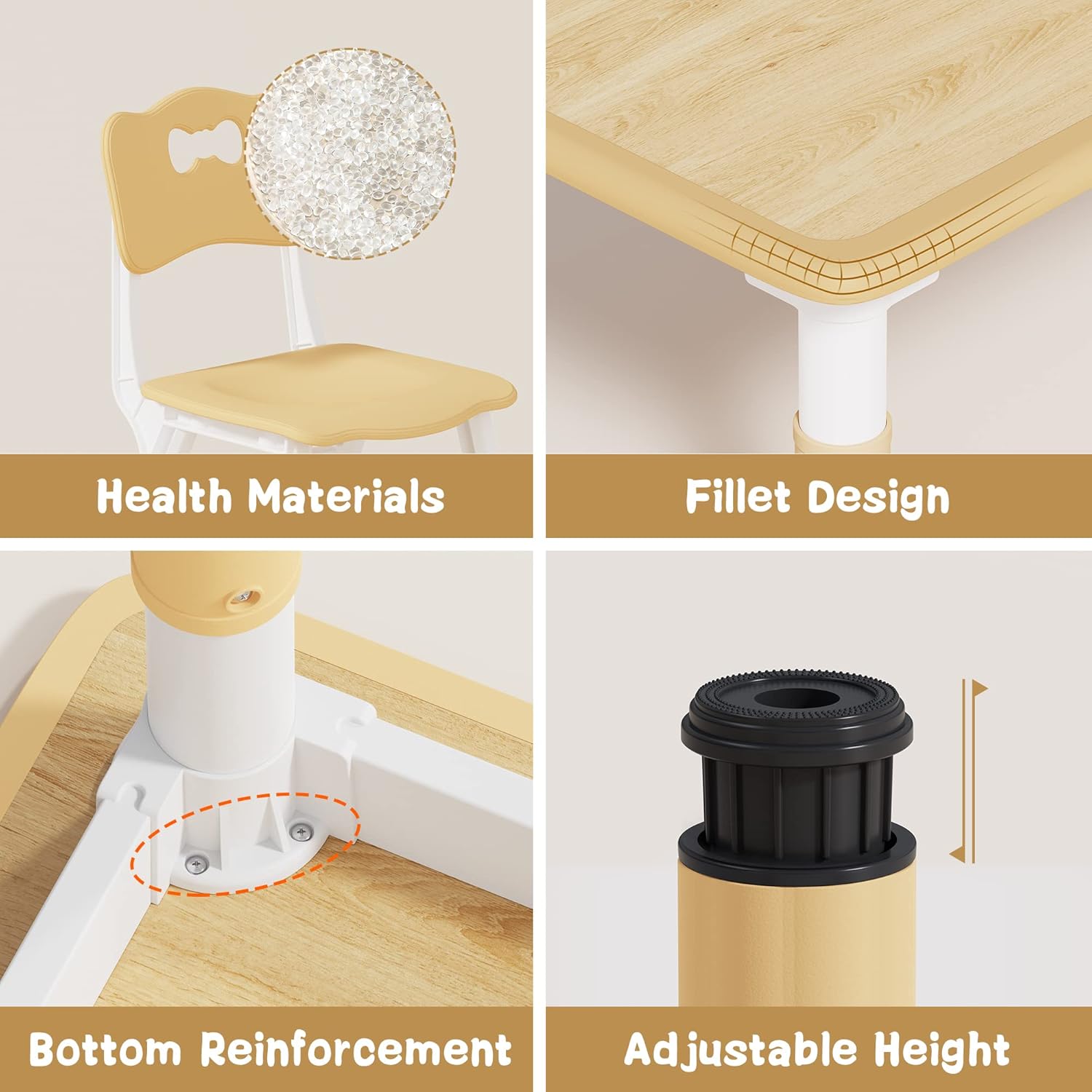• [HEIGHT ADJUSTABLE TABLE & CHAIR] The legs adjust in height on both the table and chairs. 7 different height levels for the table and 3 different height levels for the chair. Kids could sit comfortably on the custom-height chairs. Both the chairs and the table are adjustable for children aged 2-8 (according to general data), they are perfect to grow with your kids.