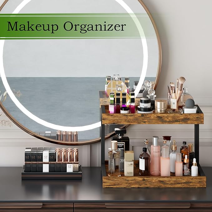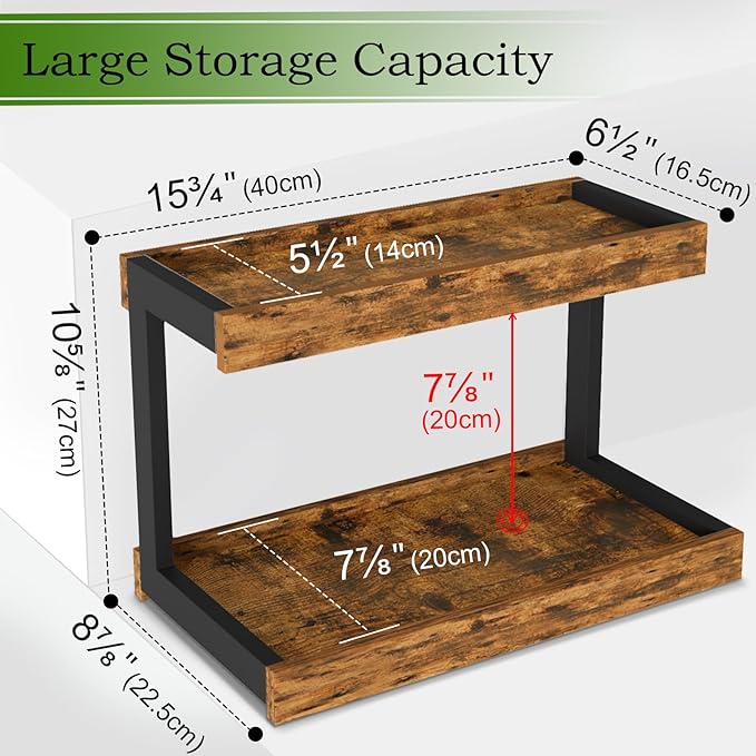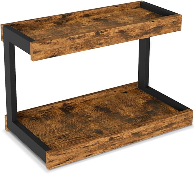 MARTY 2 Tier Spice Rack Organizer for Countertop, 15.8''L Coffee Station/Bathroom Organizer Countertop, Counter Shelf Desktop Storage Organizer for Kitchen, Bedroom, Office (Rustic Brown)