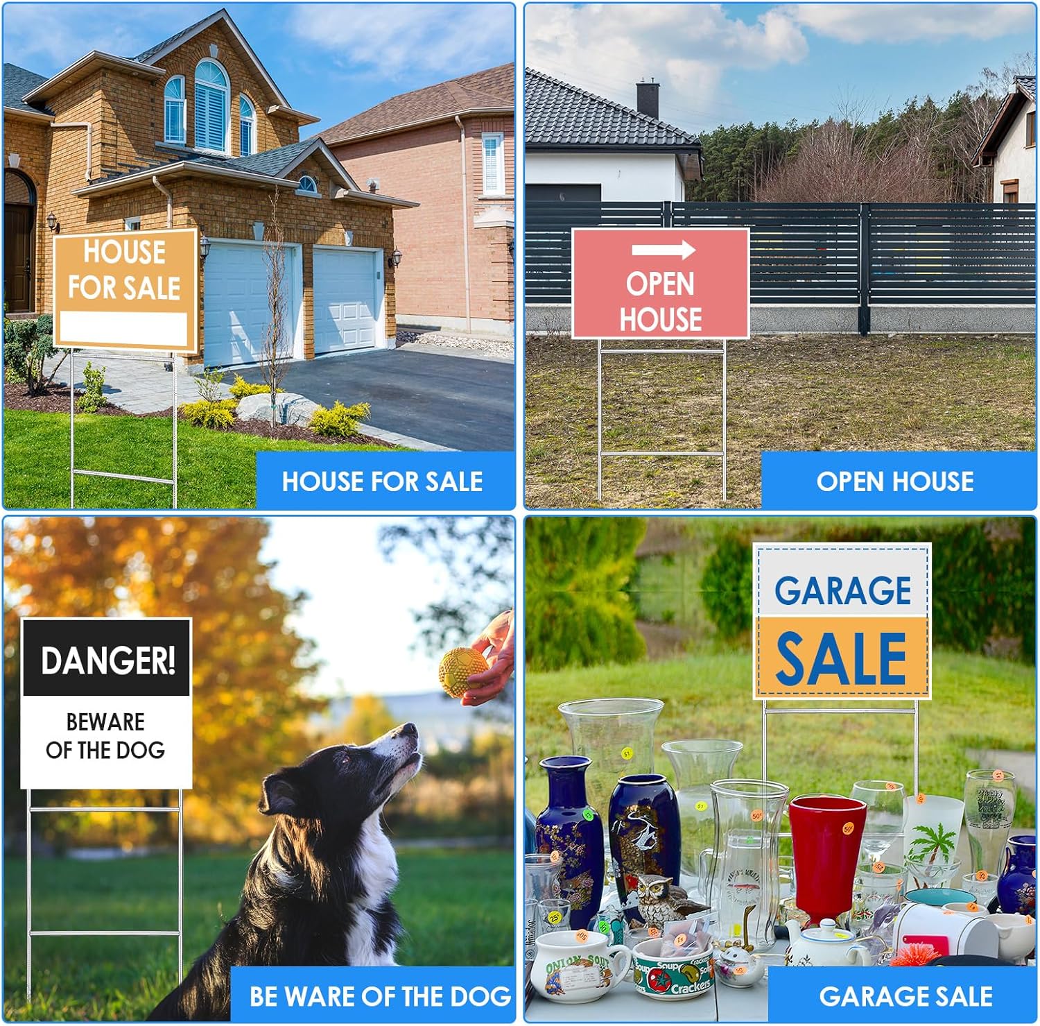 • Wide Usage: these wire yard sign stakes fit for most corrugated plastic yard signs; They are widely applied in various advertising boards, such as yard sale signs, estate sale signs, open house signs, house for sale signs, garage sales signs, and they also can be applied to guide guests for party, wedding, bridal shower and other activities