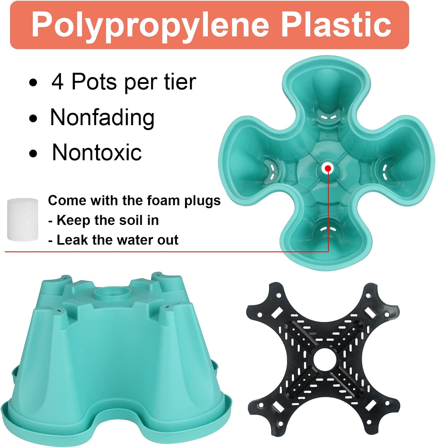 DUNCHATY Stackable Planter, Vertical Garden Planter with Wheels and Tools, Self Watering Strawberry Planter Indoor/Outdoor 3 Tier Herb Planter Pots for Growing Vegetables and Succulents, Teal