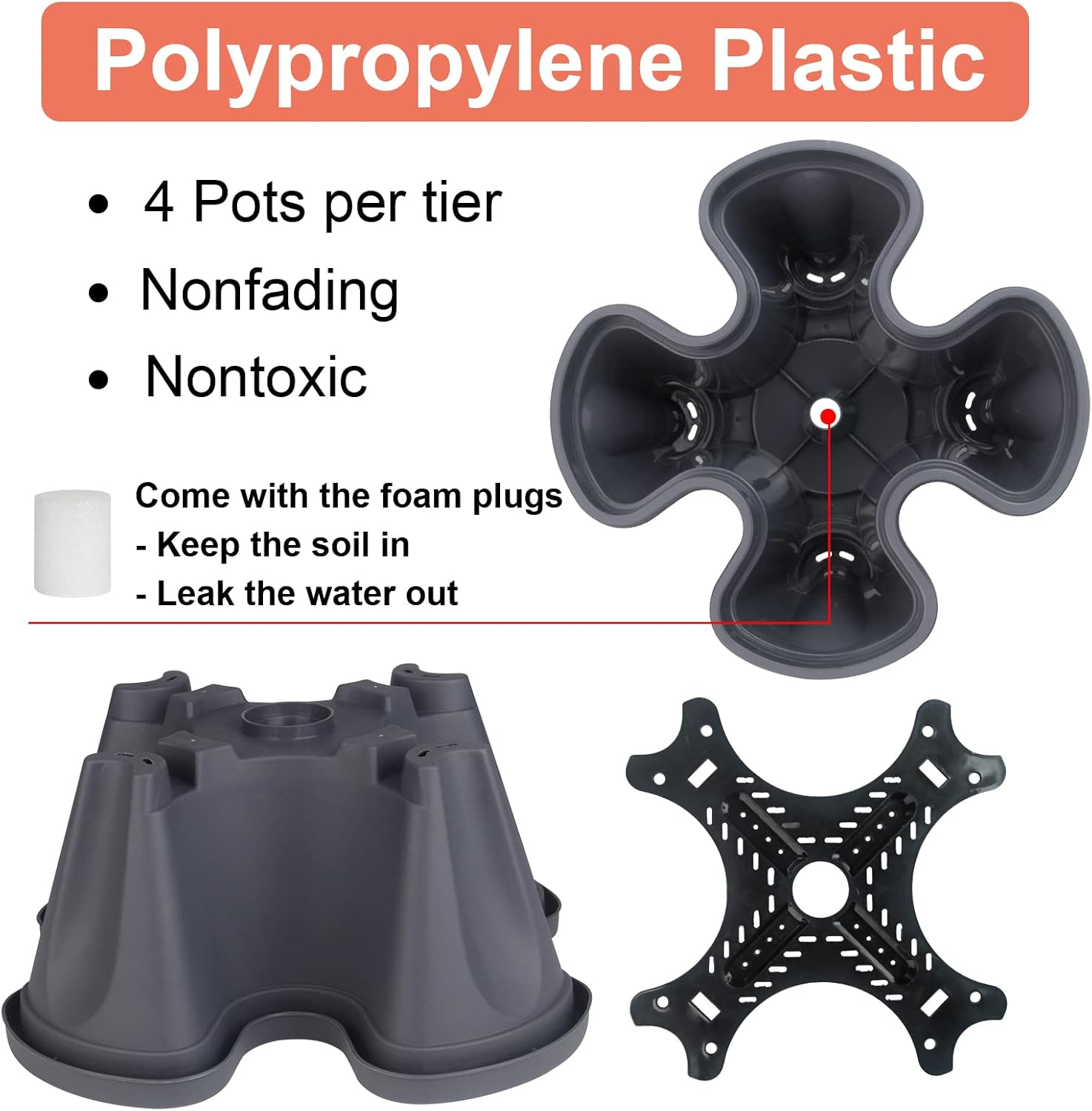 • SOIL HOLDING BOARD - Each tier has a board that holds soil while allowing water to drain down.