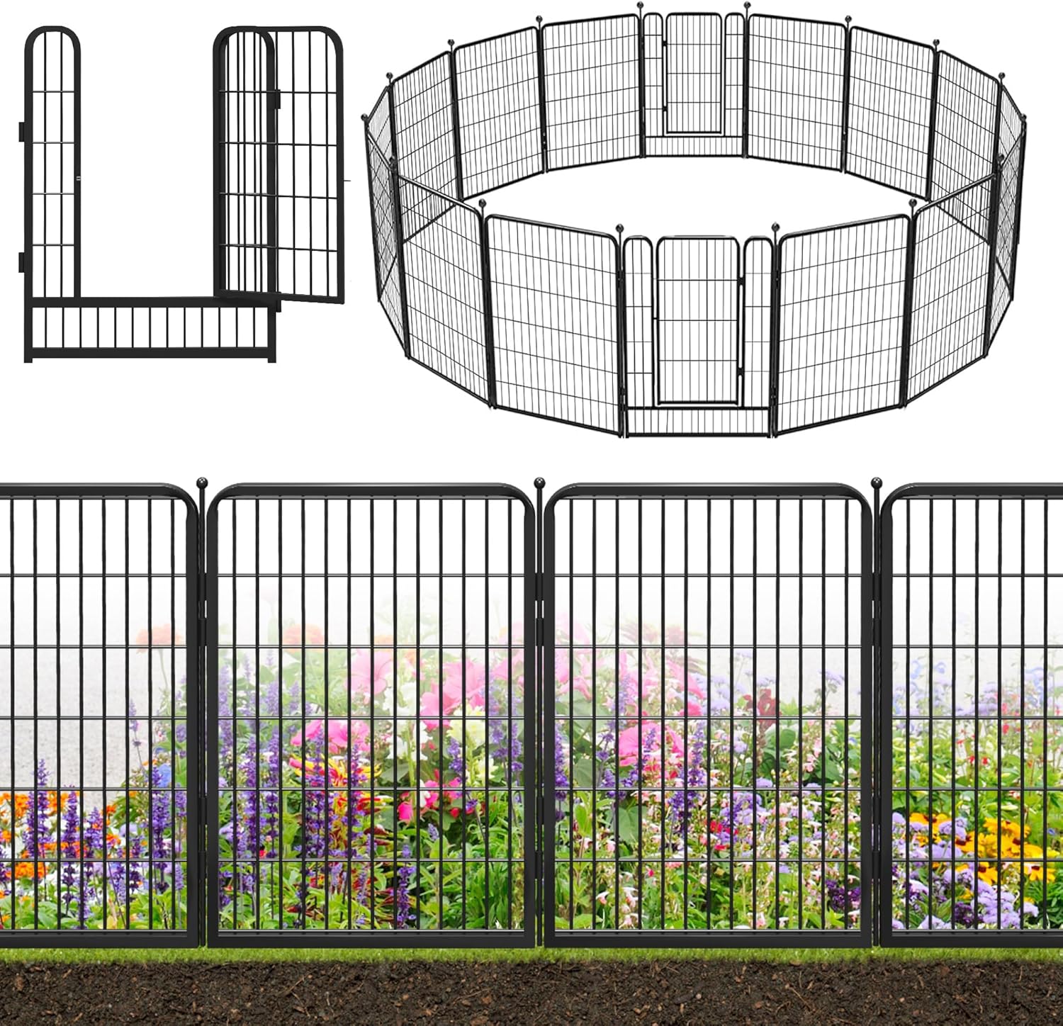 • Secure & Safe Design: The garden fence panels upgrade with ball top, easy to install and prevent getting hurt if used for pets; Heavy duty no dig fence for dogs stops animals to destroy plants, flower and vegetables. The garden fence with gate equipped with secure lock, make a convenient entrance and exit, keep animals like dogs, rabbits, chicken or duck out of your garden