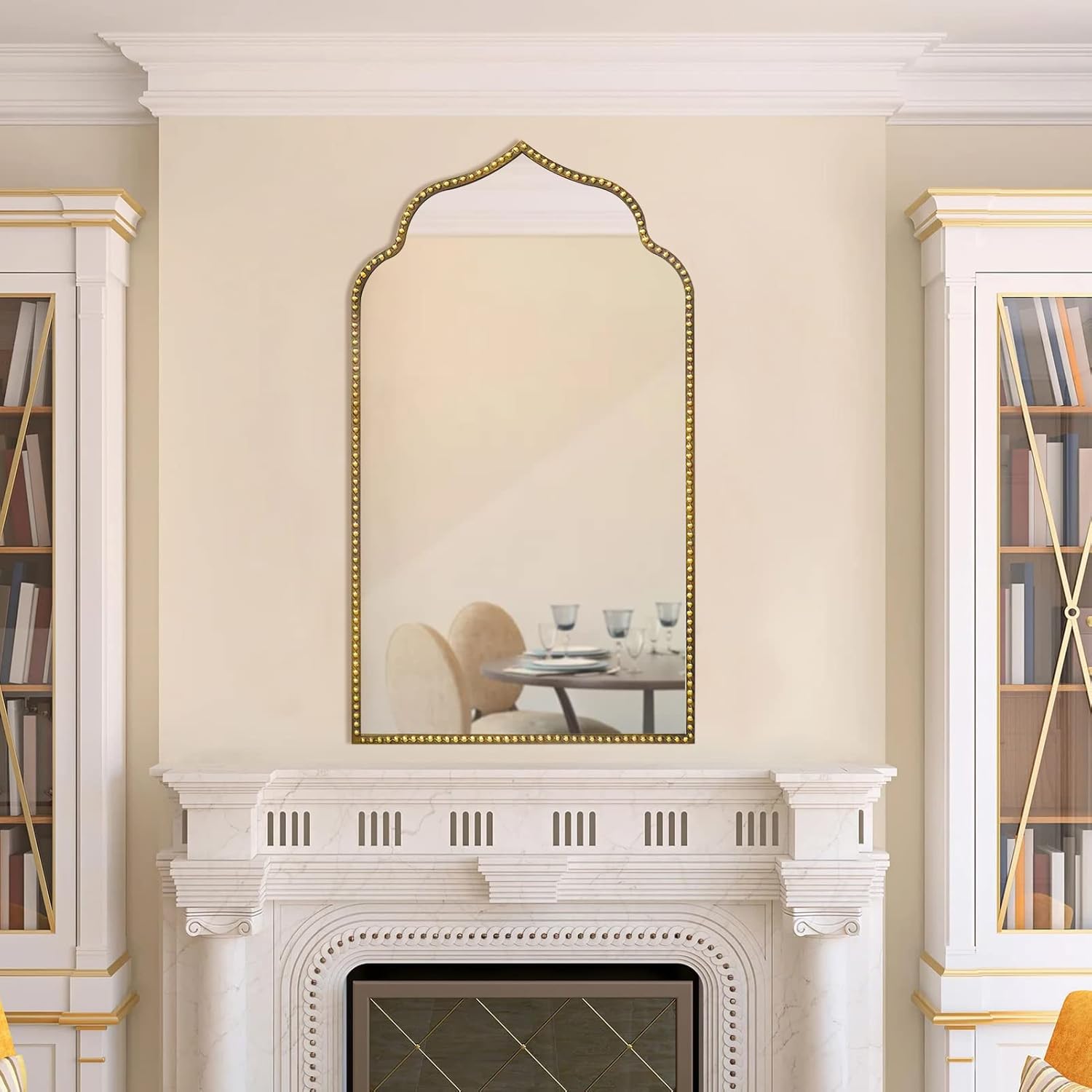 Arch Wall Mirror, 22" W x 38" H Metal Marlowe Beaded Frame Accent Mirror, Large Modern Vintage Gold